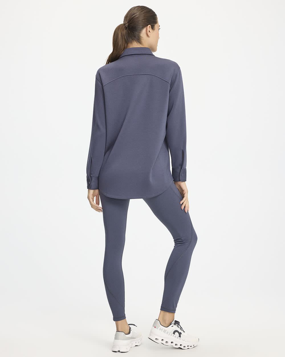 We love this overshirt. A unique piece to wear over a sports bra and legging, perfect to get to and from your yoga class.