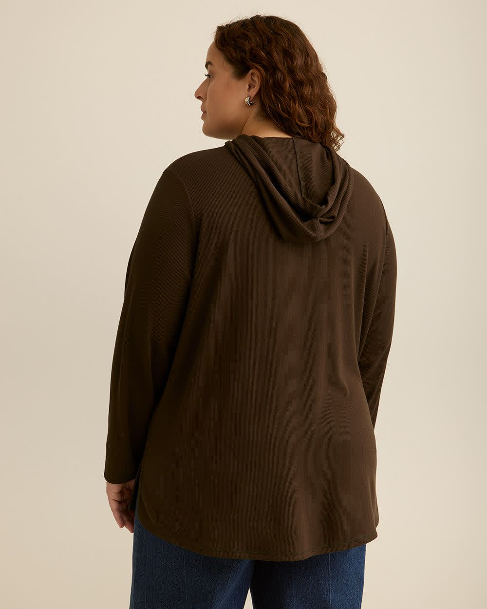 Keep it comfy and laid-back with this plus-size long-sleeve waffle knit hoodie. Soft, breathable, and easy to layer, it's the perfect everyday essential for relaxed style.