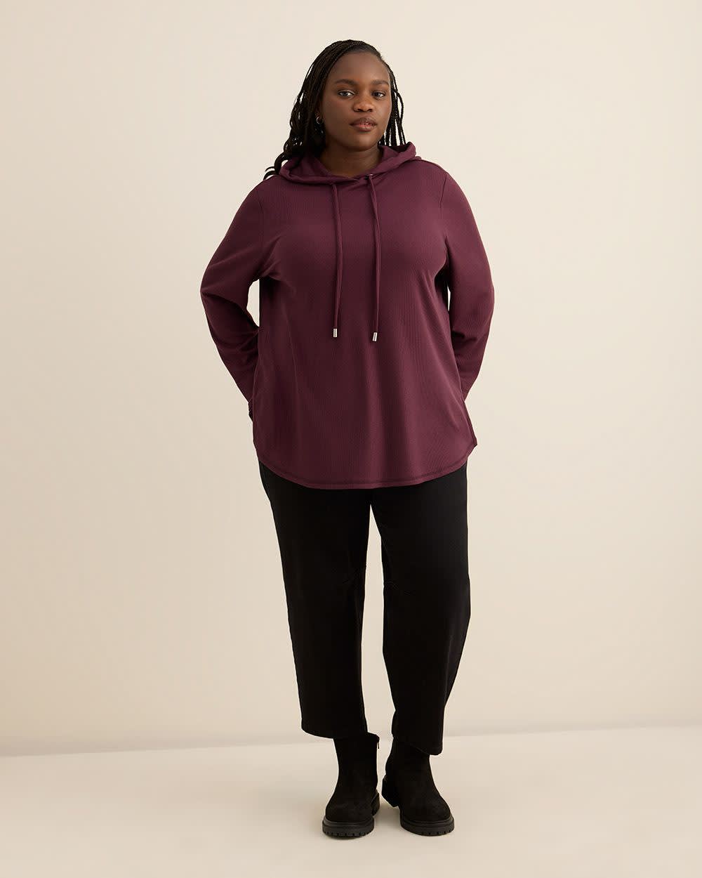 Keep it comfy and laid-back with this plus-size long-sleeve waffle knit hoodie. Soft, breathable, and easy to layer, it's the perfect everyday essential for relaxed style.