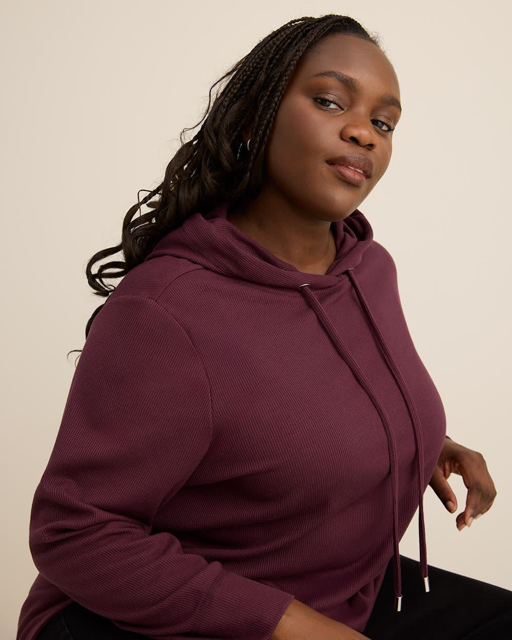 Long-Sleeve Waffle Knit Hoodie