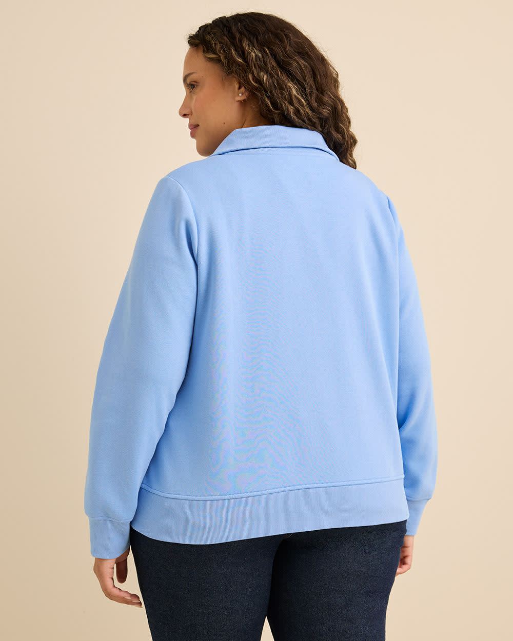 This plus-size sweater is the epitome of comfort. Featuring a mock neckline with snaps and a super soft fleece finish, this straight-fit top will become a favourite you'll want to wear it day after day.