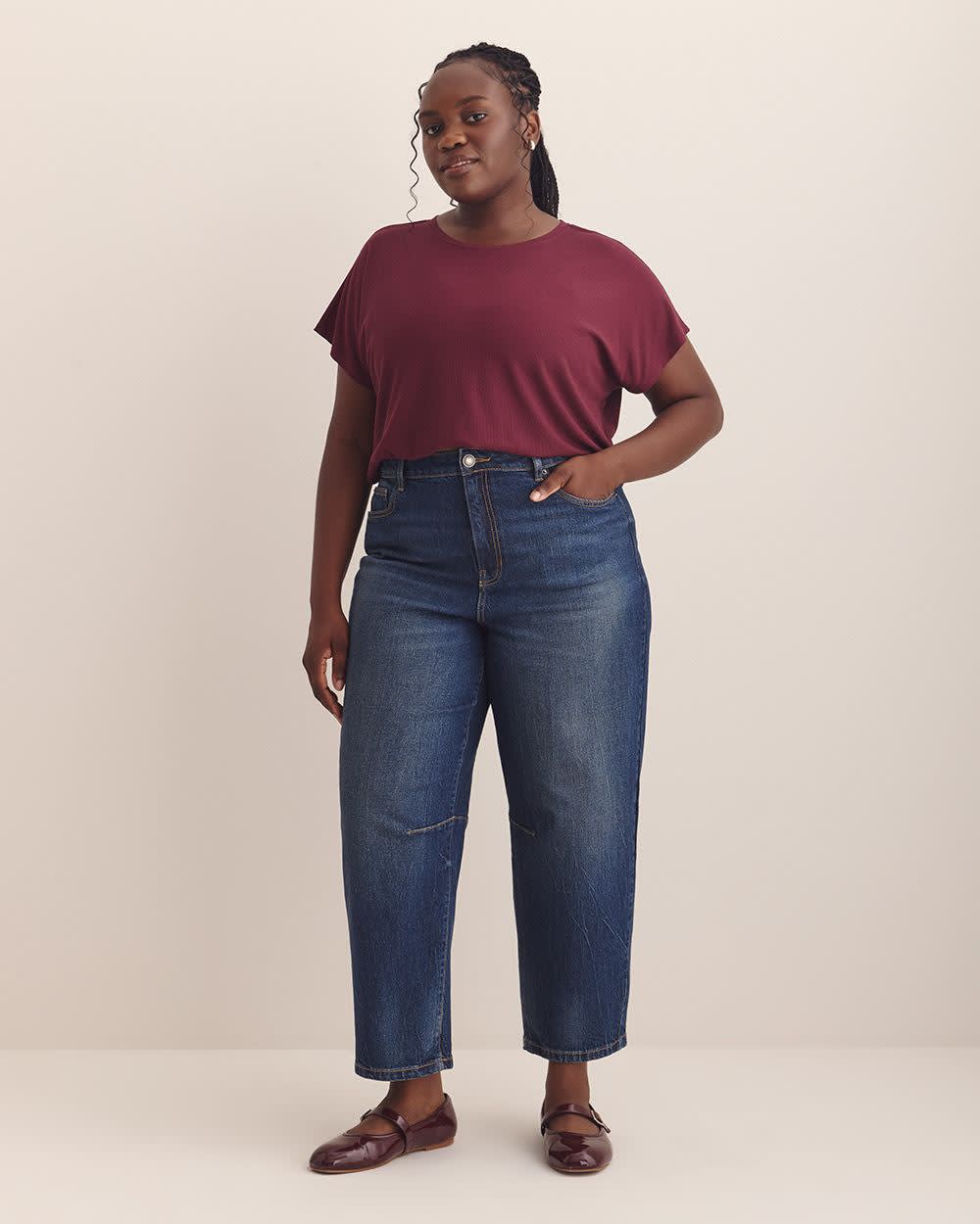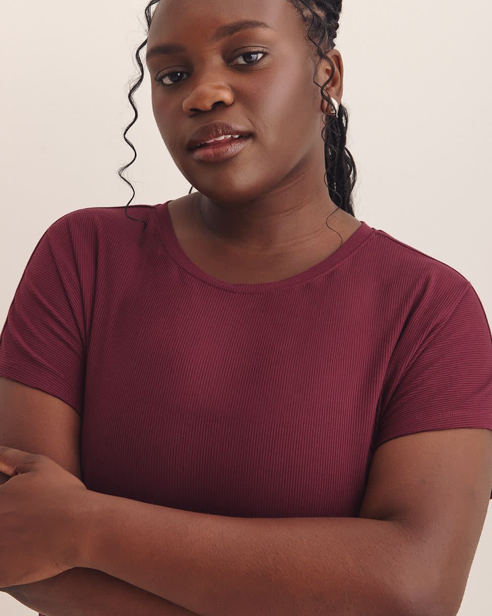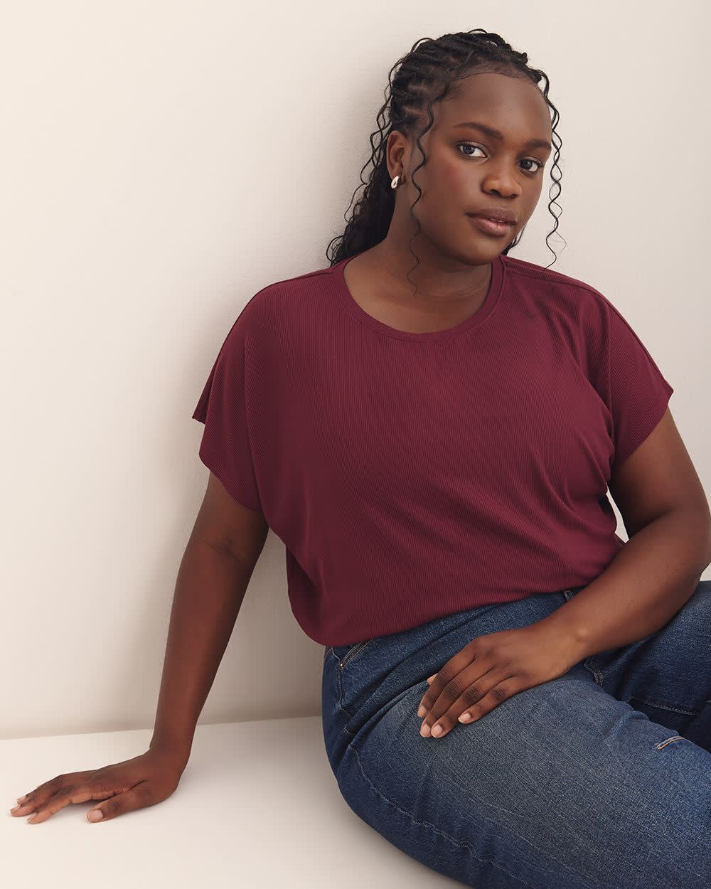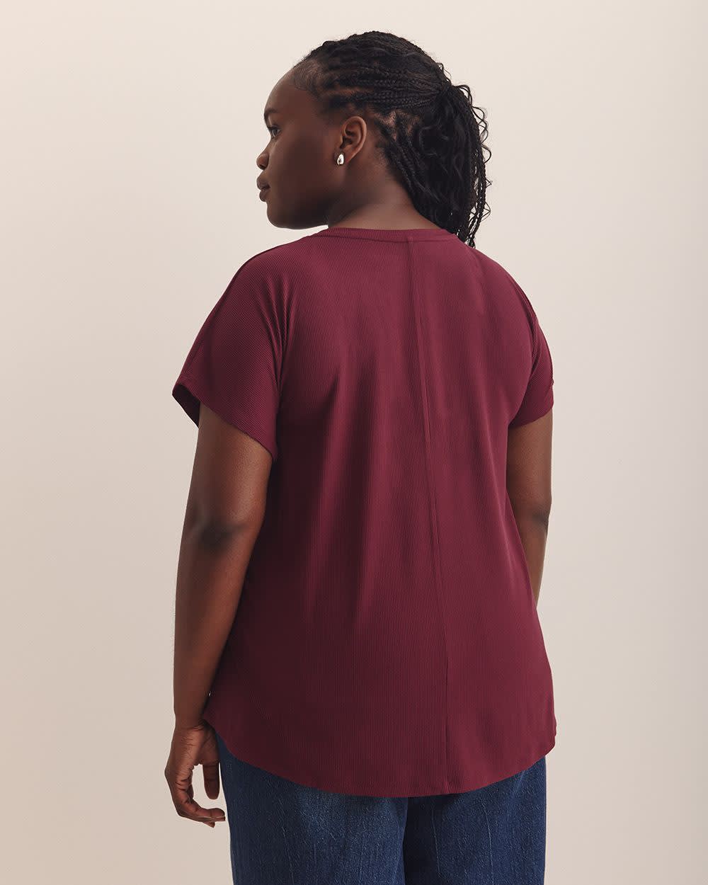 A modern fit for the modern women. This plus-size crewneck tee is fashioned in a slight A-line silhouette that flatters your curves in all the right places, with stylish extended sleeves and a trendy ribbed knit finish for all-day comfort and style.
