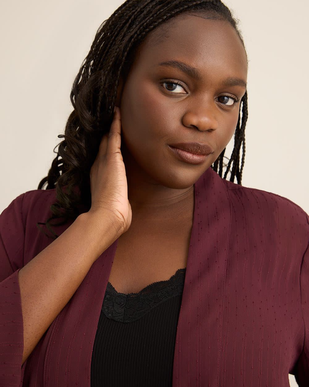 Lightweight and easy to pair, this plus-size open-front overpiece is made to complete your outfits with style. Hitting just below the knee, it is a functional and fashionable layer that elongates your silhouette.