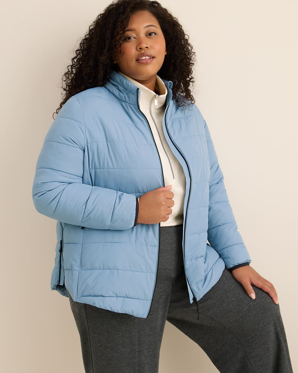 This plus-size jacket is all you'll need on your next outdoor adventure! Designed with practicality in mind, this quilted jacket features a removable hood and a compressible, packable design, while keeping you warm.