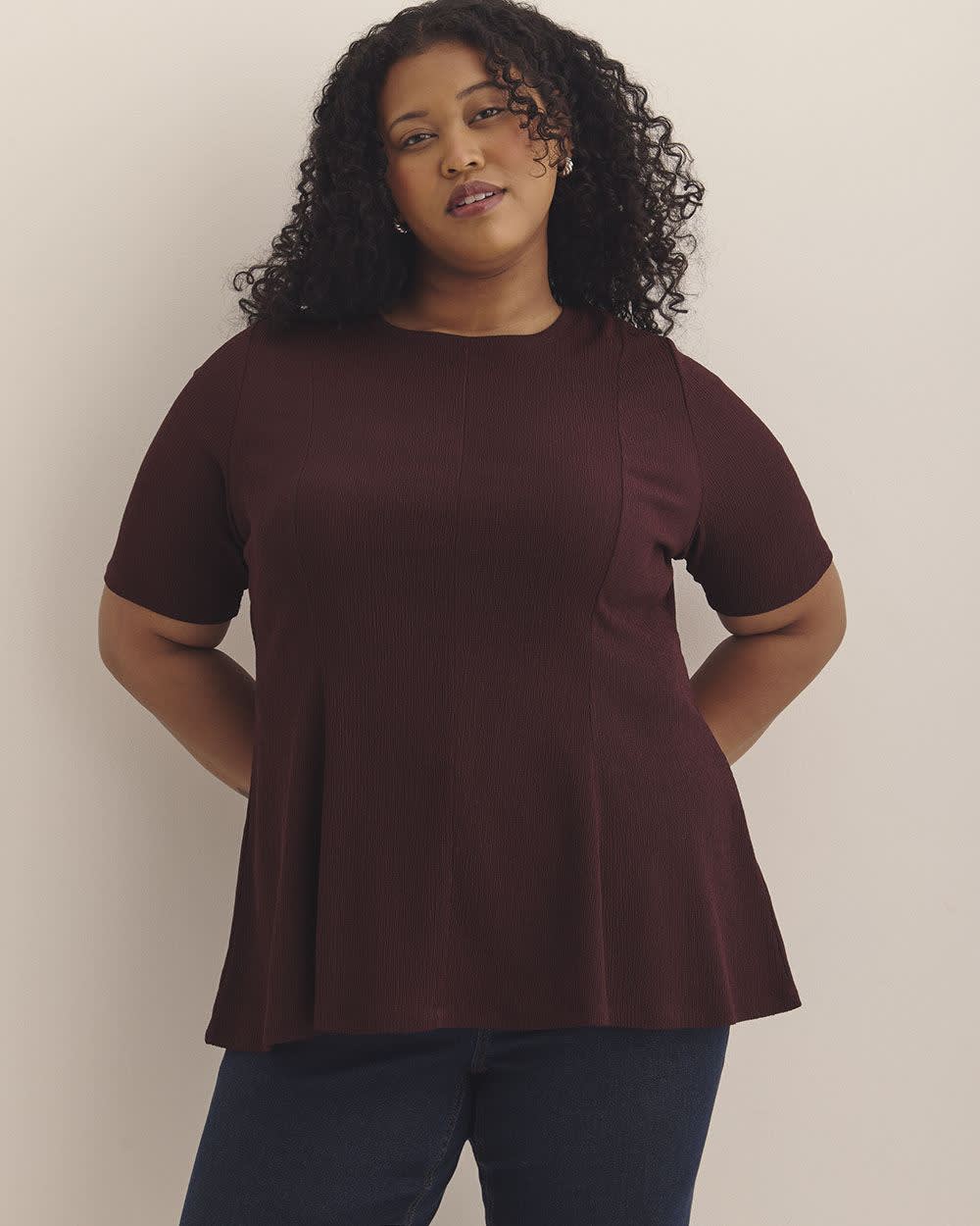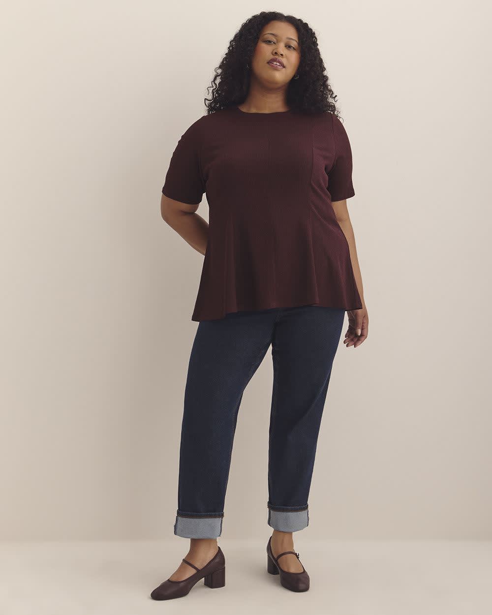Super stylish, super soft and super comfortable. The best features meet in this plus-size knit top cut in a swing shape with princess seams at front and back that flatter your silhouette.