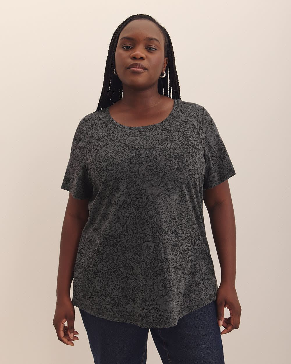 Printed Curvy-Fit Short-Sleeve Crewneck Tee