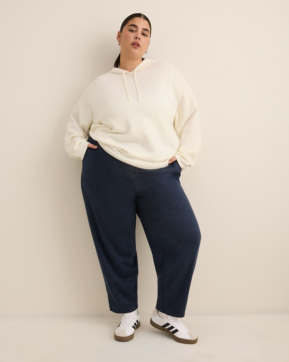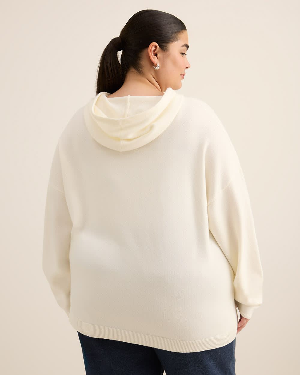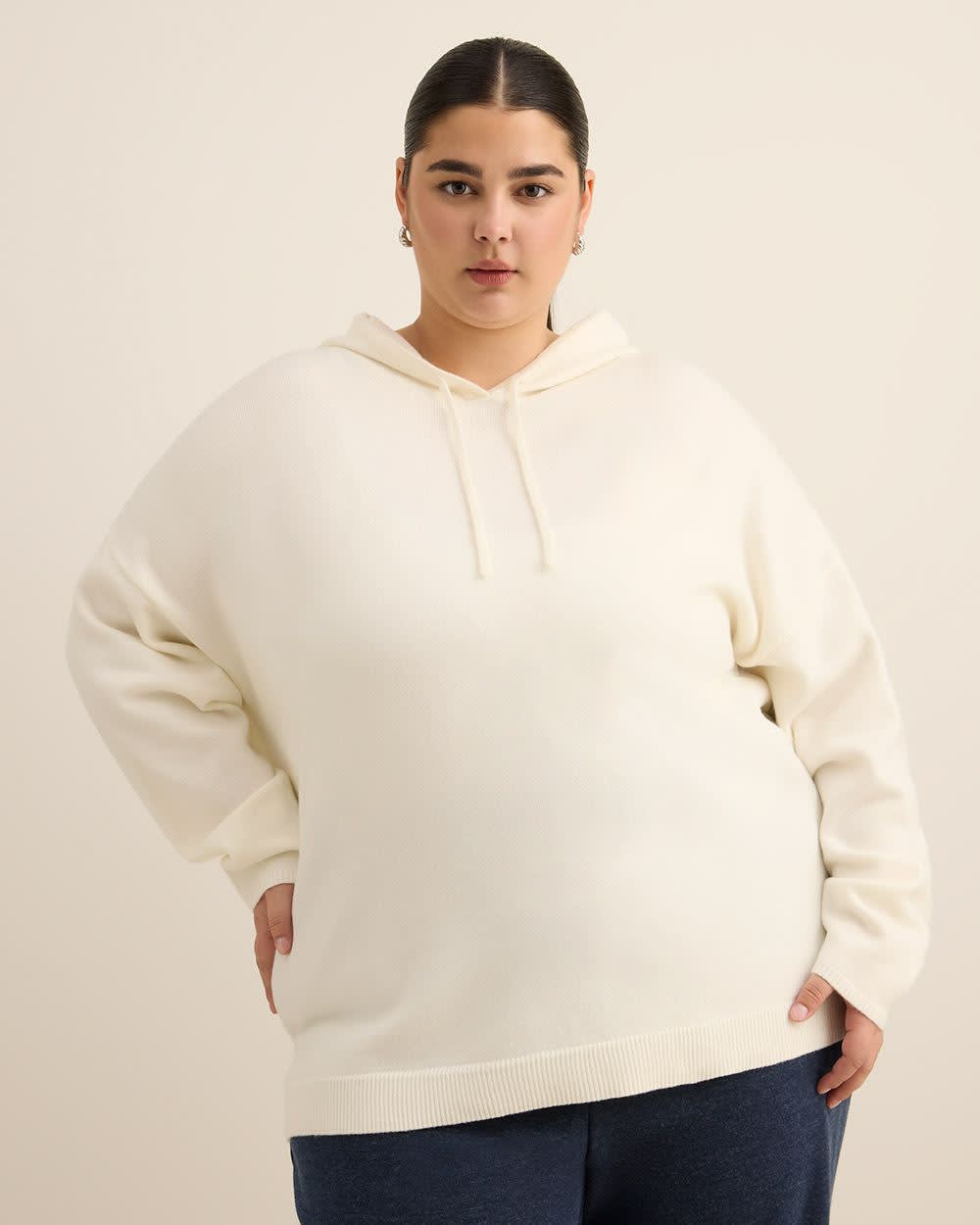 Wrap yourself in comfort with this plus-size relaxed-fit shaker-stitch hooded sweater. Soft, warm, and effortlessly laid-back, it's the perfect knit for easygoing days.