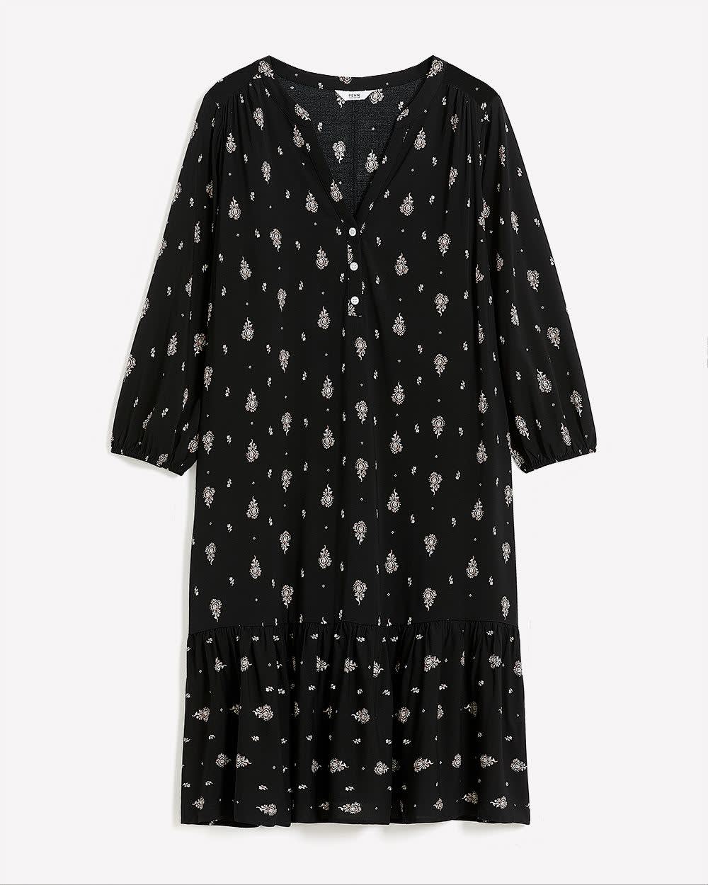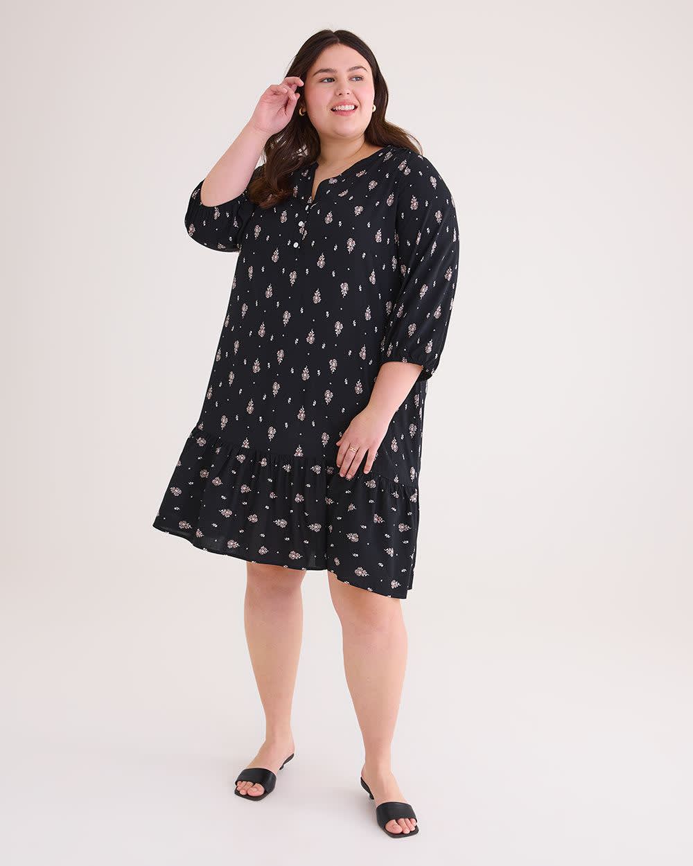 Embrace laid-back elegance with this casual plus-size shirt dress. Effortlessly combining the ease of a shirt with the versatility of a dress, this ruffled tiered dress is a go-to for relaxed, yet stylish, everyday wear.