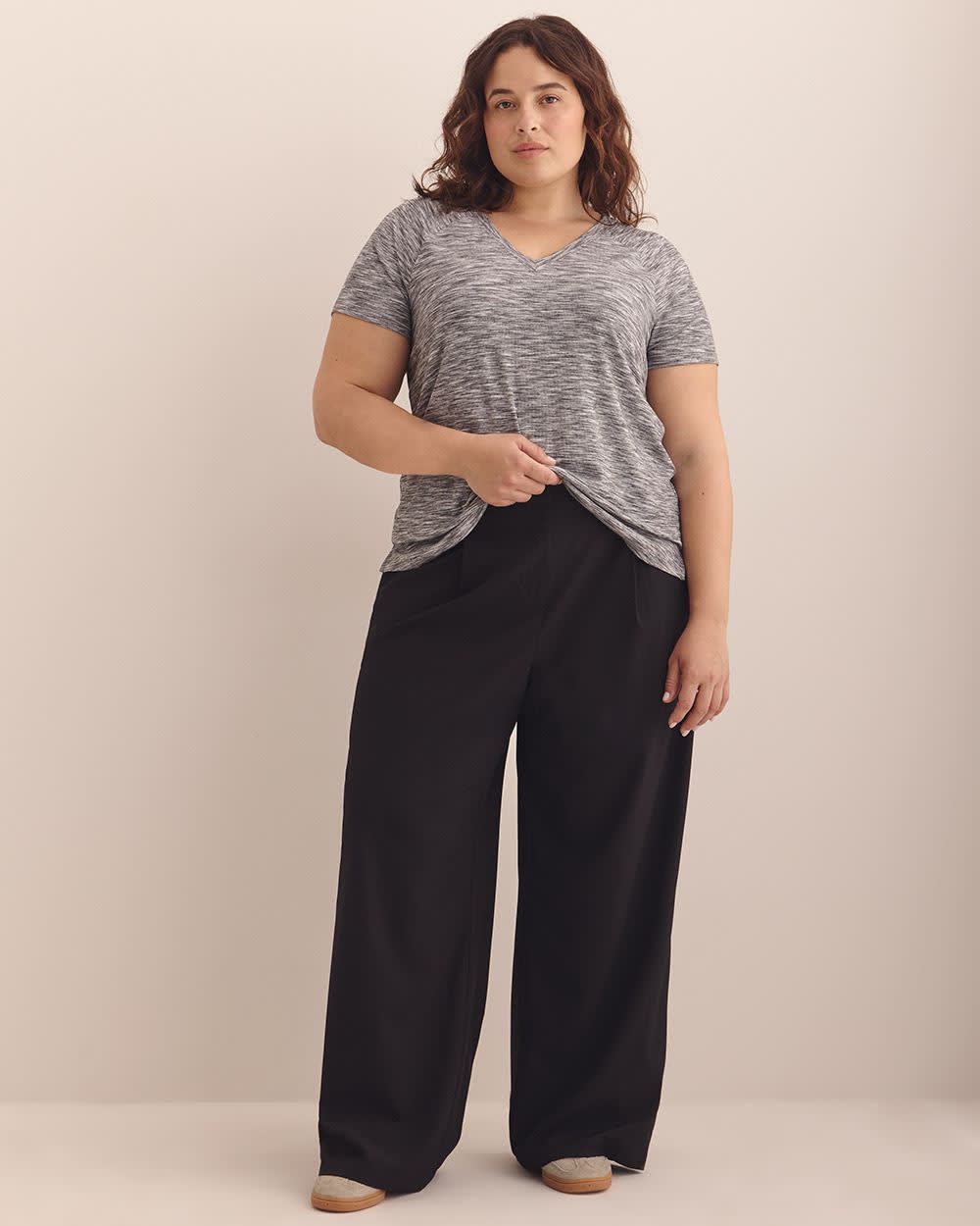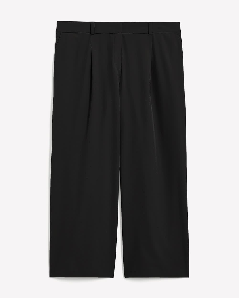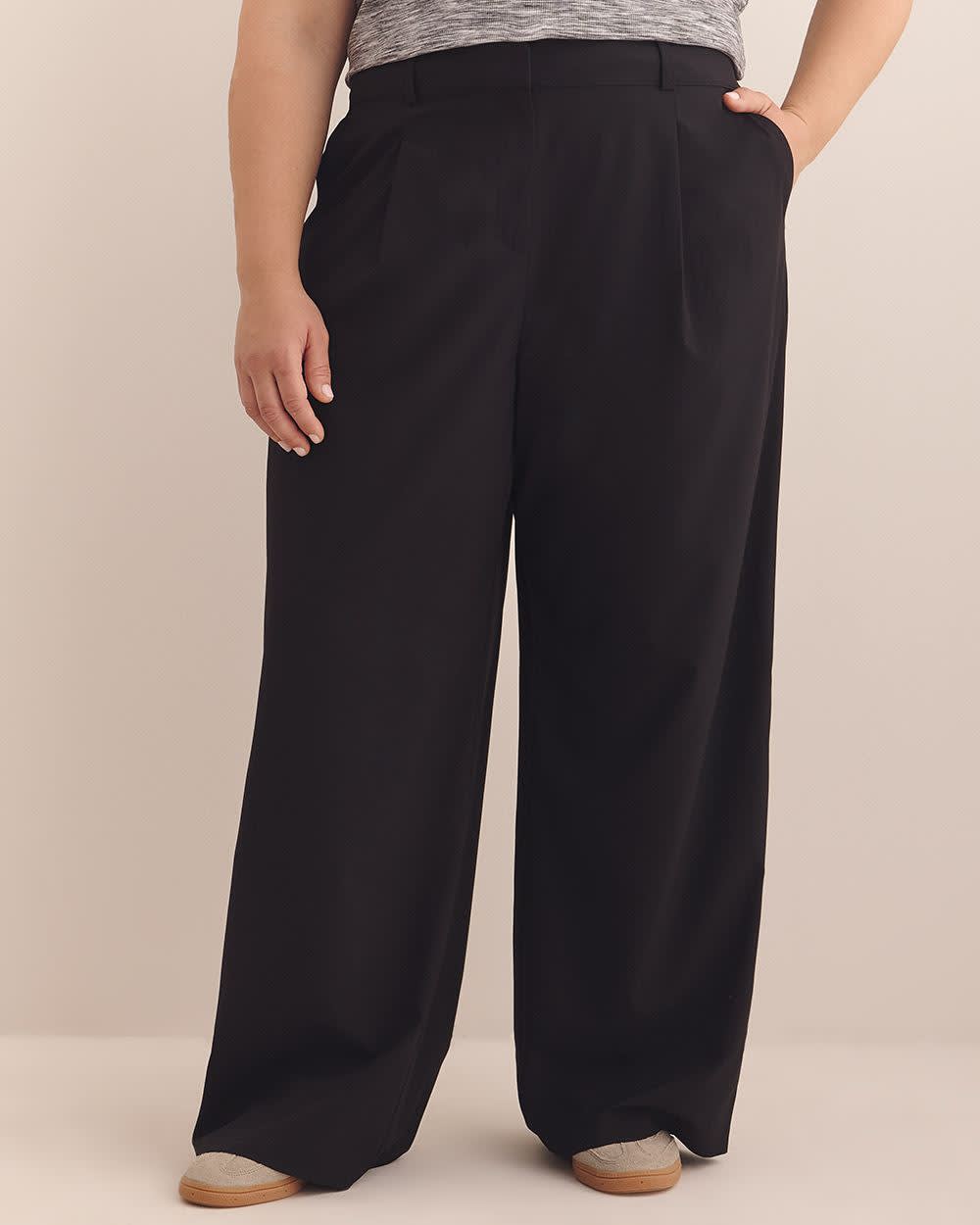 You don't know what to wear for a stylish yet comfortable look? This plus-size wide-leg pant offers the best of both worlds with its 4-way stretch finish, wide leg, high rise, slanted pockets, and elastic back waistband. A must-have in your seasonal wardrobe for a versatile and elegant wear, from the office to a night out.
