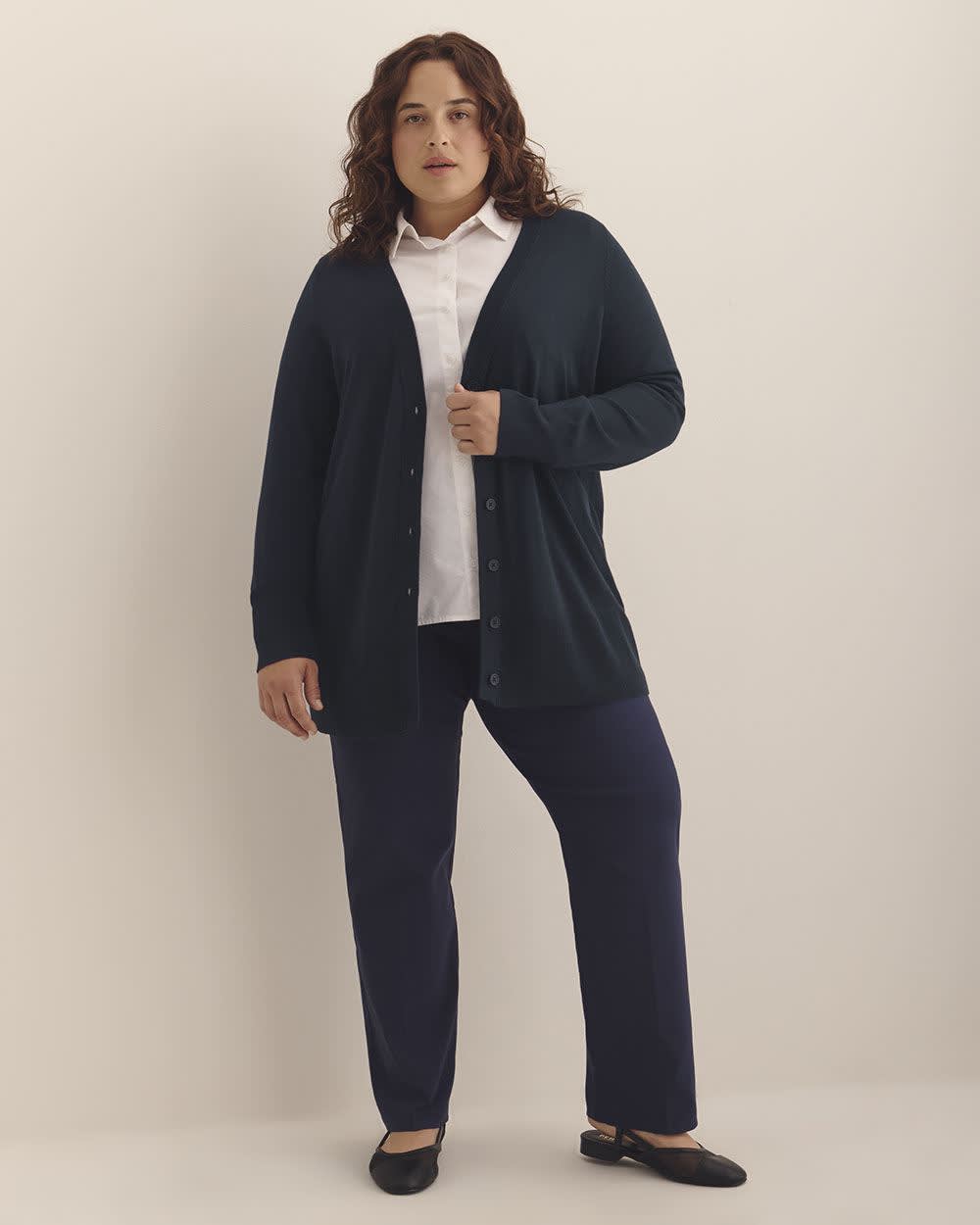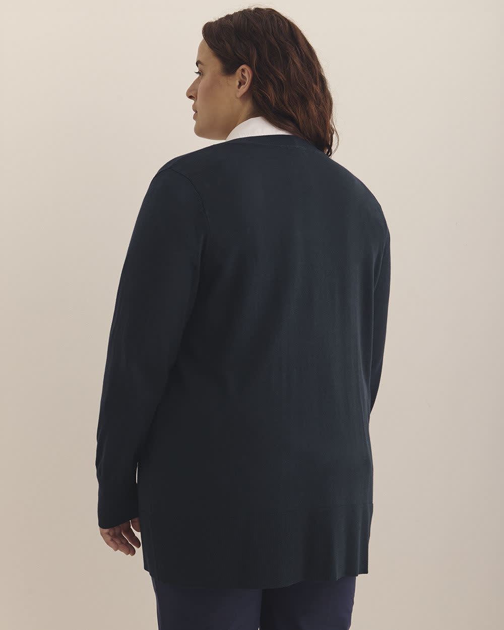 The perfect addition to your year-round wardrobe. This plus-size long classic cardigan is designed to keep you warm and stylish when it gets a little breezy. Providing a relaxed, yet elegant look, it is ideal for layering over your favorite outfits.