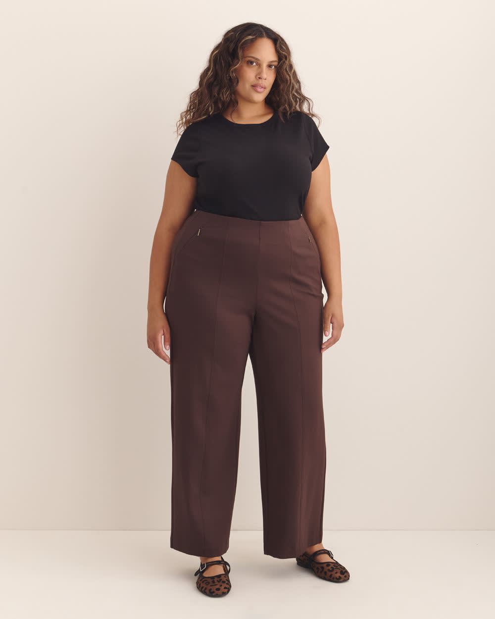 Undeniably chic, these plus-size wide-leg stretch pants are sure to attract compliments. Cut from soft Ponte de Roma and styled with a concealed elastic waistband for a silhouette that's always flattering, they are perfect to wear with heels and a fitted top for a truly on-trend outfit.