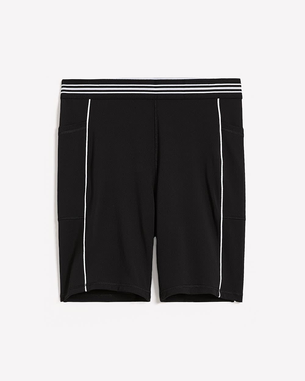 Get your sweat on with these plus-size biker shorts featuring moisture-wicking properties for ultimate comfort. With their contrasting piping and pockets on each side, they are as practical as they are stylish.