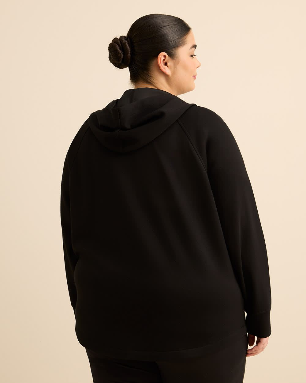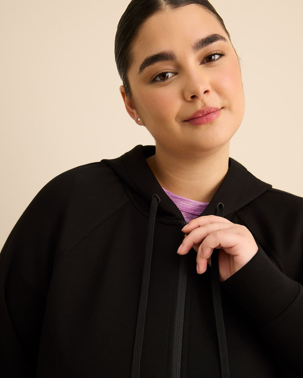 Lightweight, easy, and ready for anything. This plus-size hooded zipper jacket keeps things casual and comfortable with its soft feel, ribbed details, and practical pockets. Perfect for layering when you're on the move.