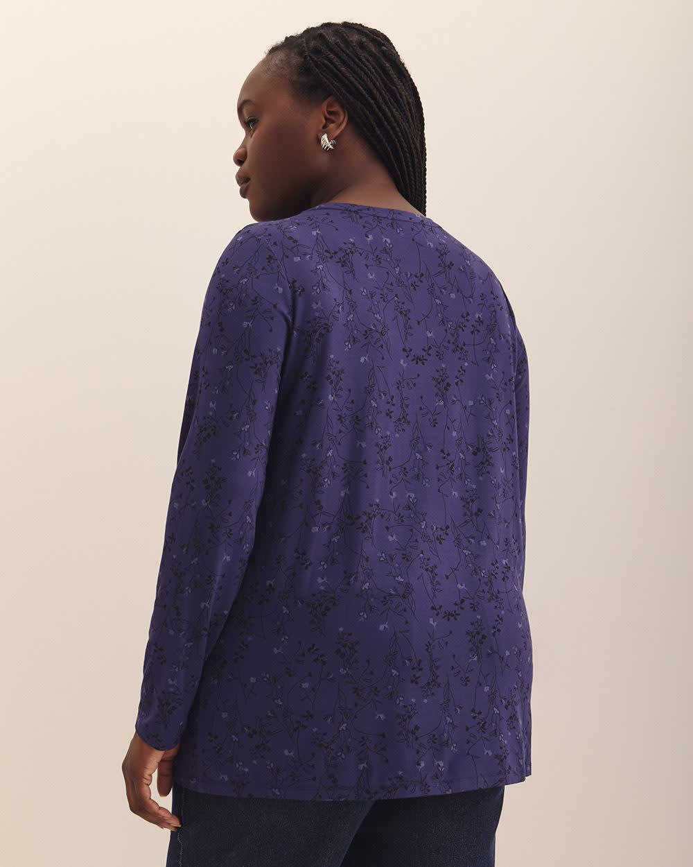 Upgrade your wardrobe with this plus-size modern-fit long-sleeve t-shirt and enjoy the perfect combination of style, comfort, and quality. With its feminine floral print and classic crewneck, it will pair wonderfully with your jeans, and leggings all season long.