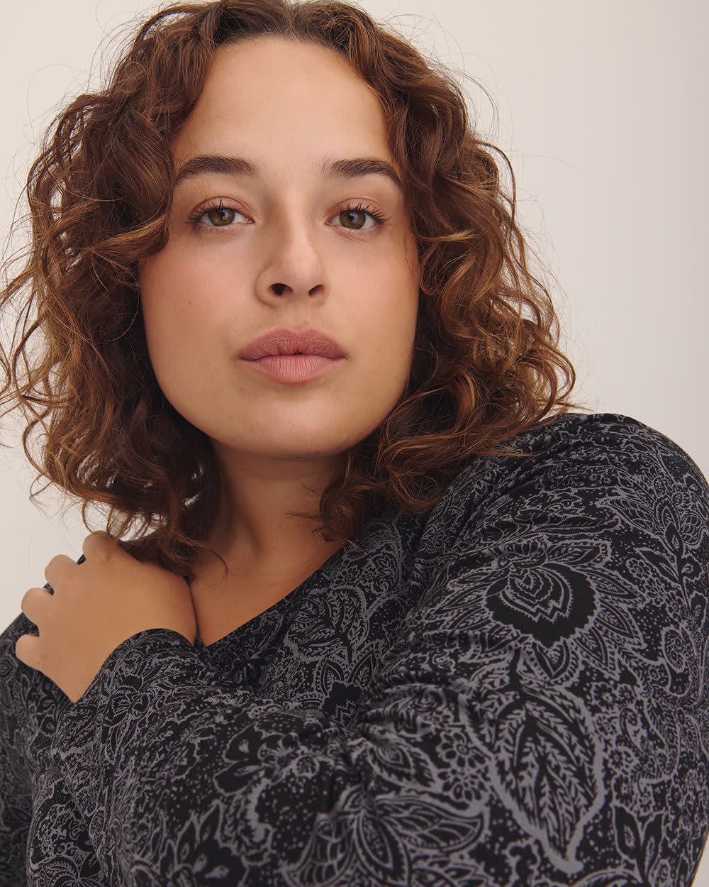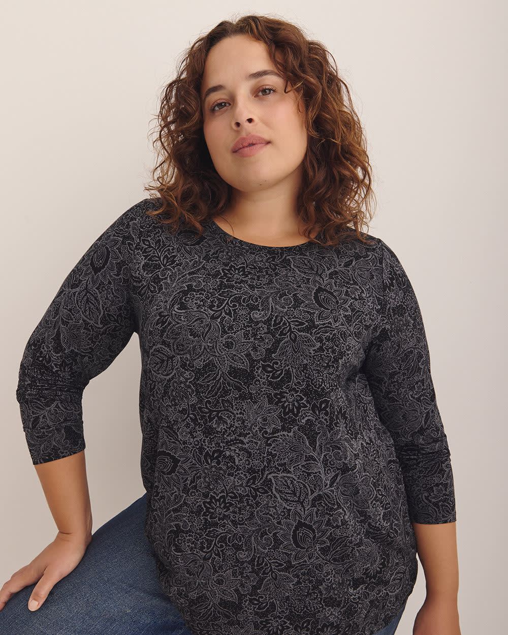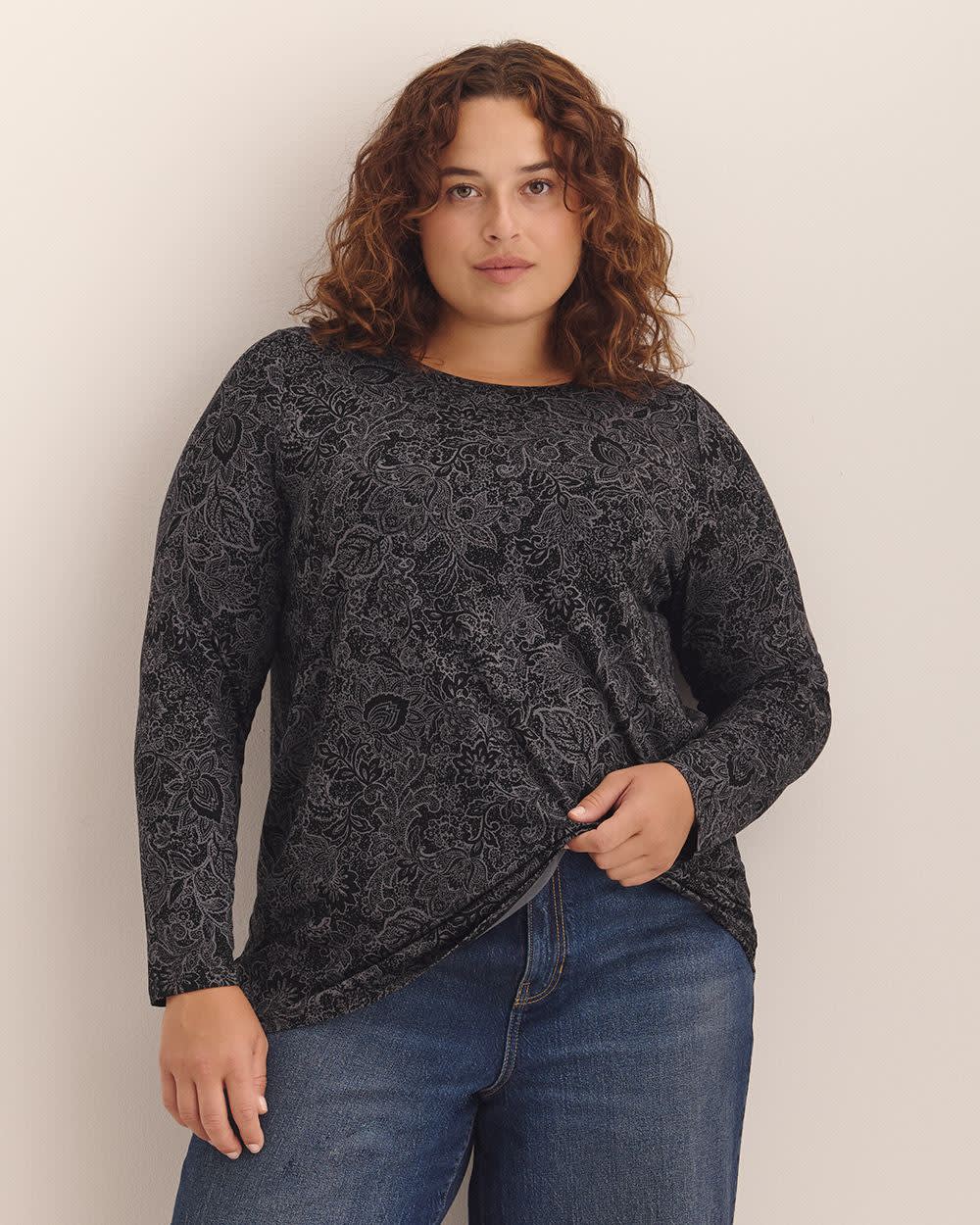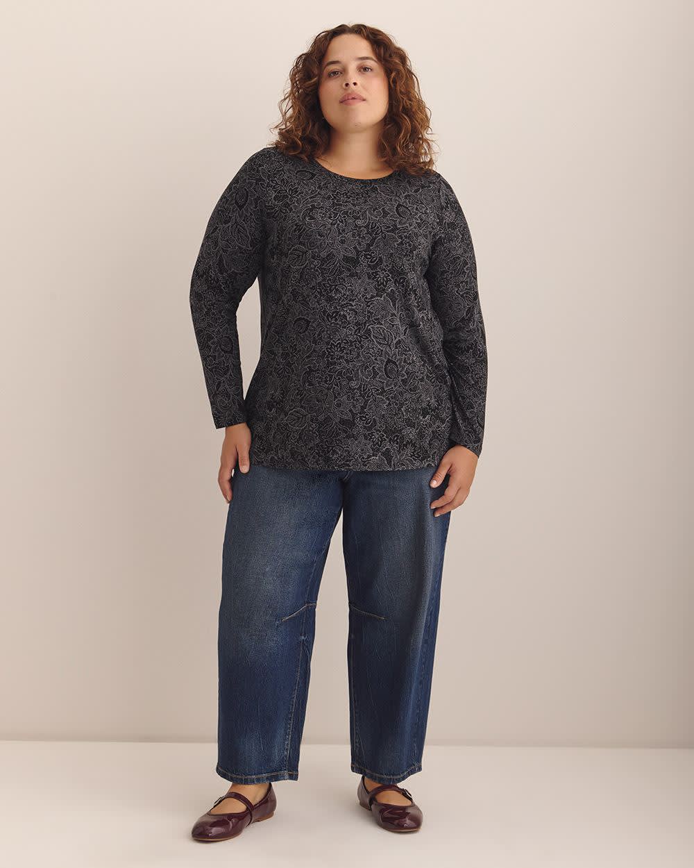 Upgrade your wardrobe with this plus-size modern-fit long-sleeve t-shirt and enjoy the perfect combination of style, comfort, and quality. With its feminine floral print and classic crewneck, it will pair wonderfully with your jeans, and leggings all season long.