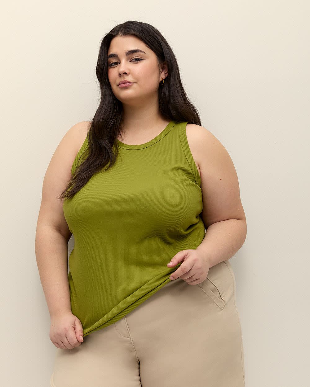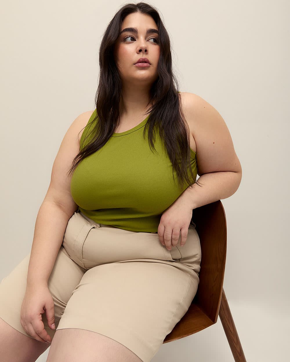 The perfect addition to your year-round wardrobe! Made from a soft and stretchy rib knit fabric, this plus-size cami hugs your curves in all the right places while still providing a comfortable fit. The classic crewneck and sleeveless design make it the perfect top to layer, while the ribbed texture adds a touch of sophistication.
