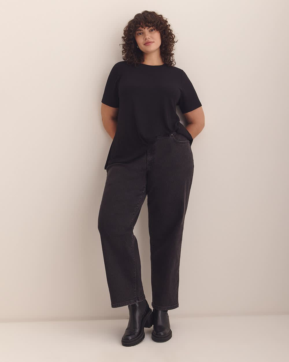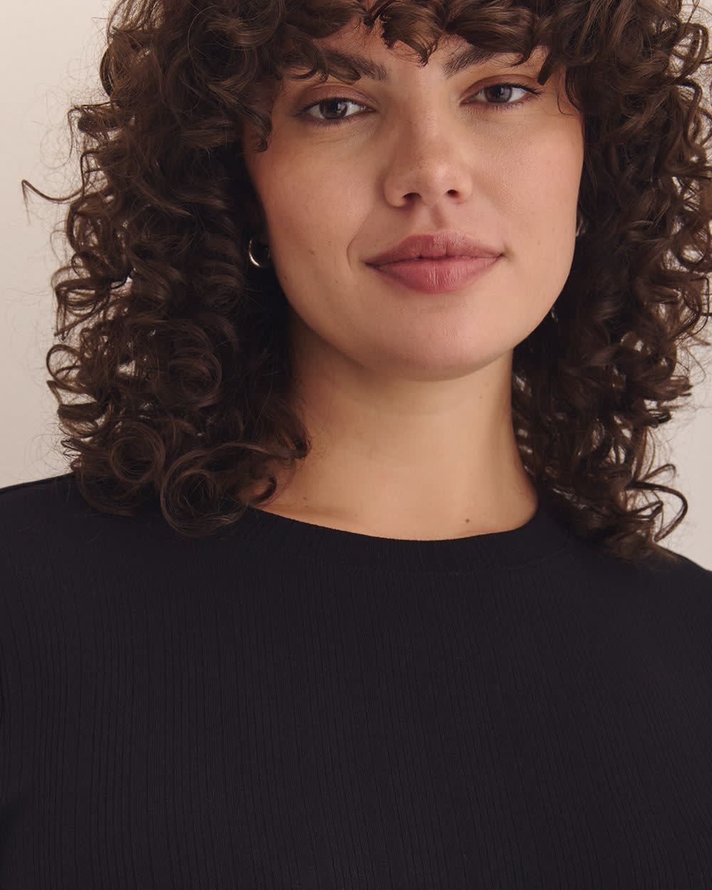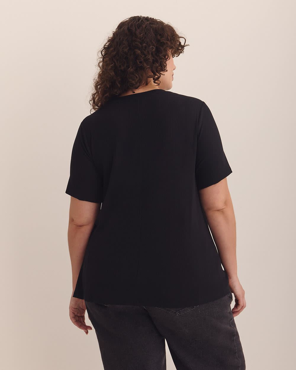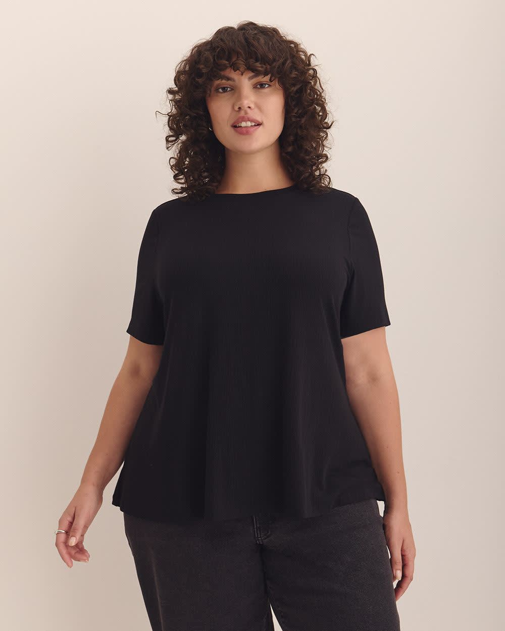 Keep it easy and breezy with this plus-size ribbed swing top. Designed with short sleeves and a flowy fit, it's the perfect everyday piece for comfort and style.