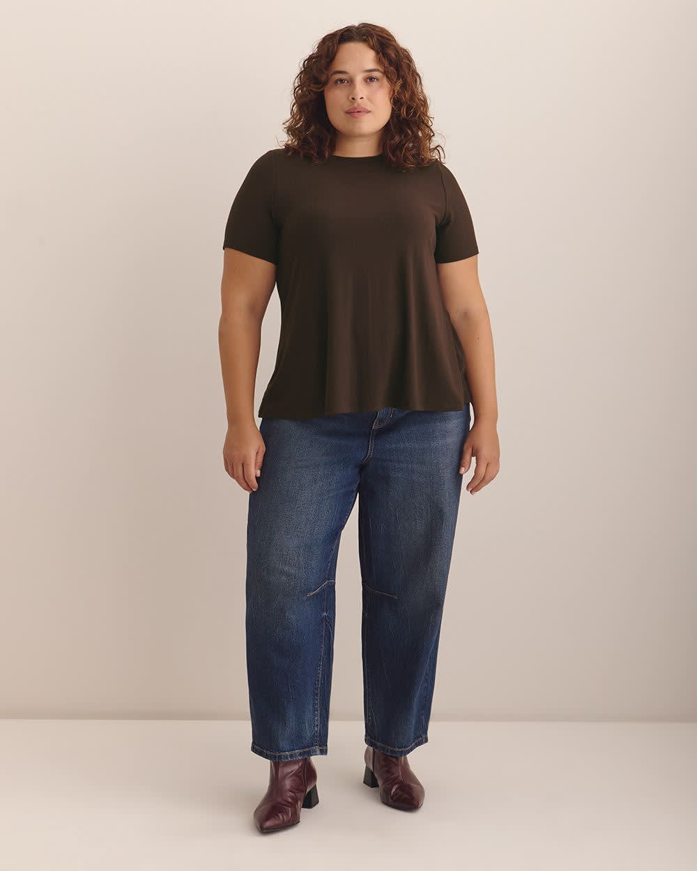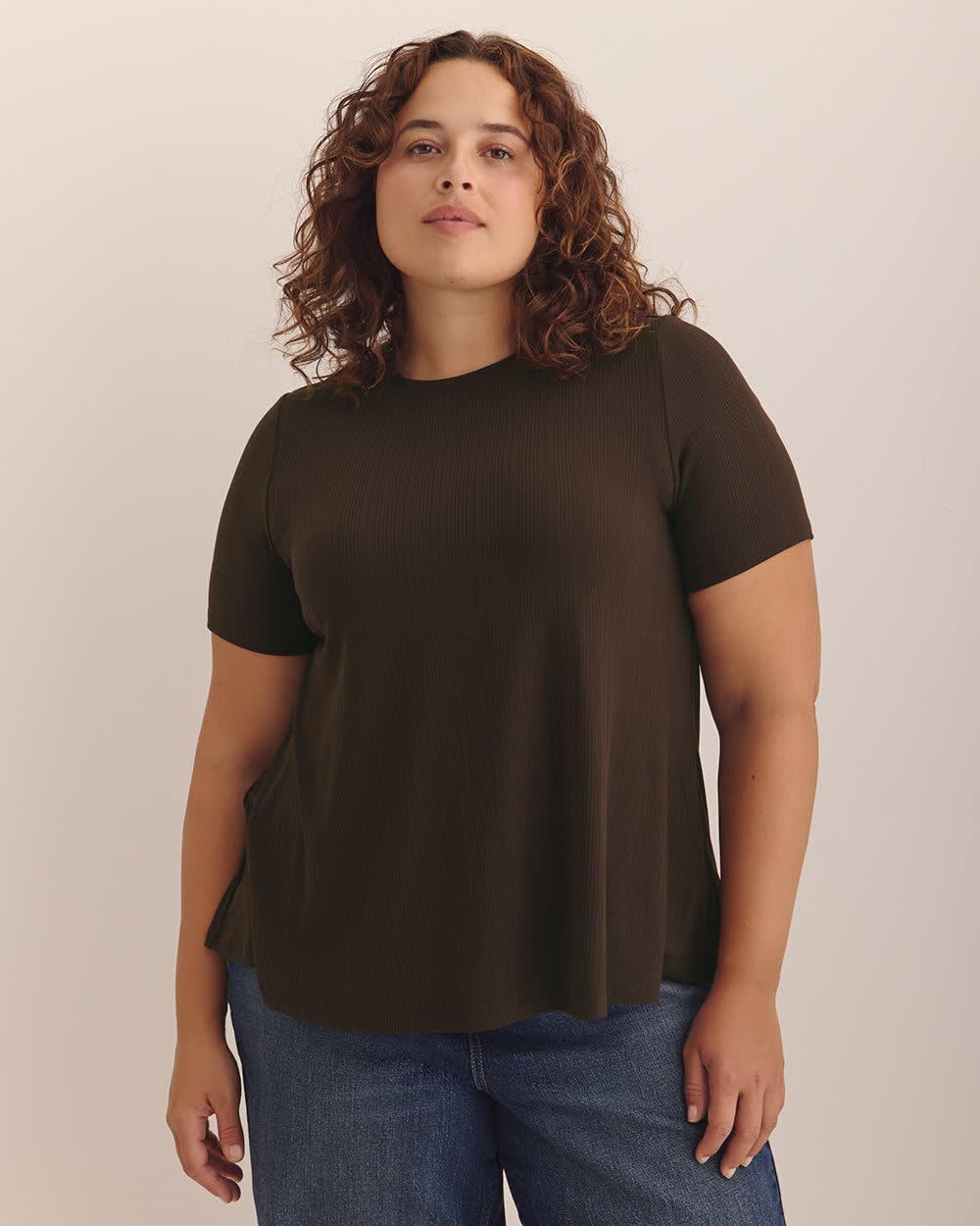 Ribbed Short-Sleeve Swing Top