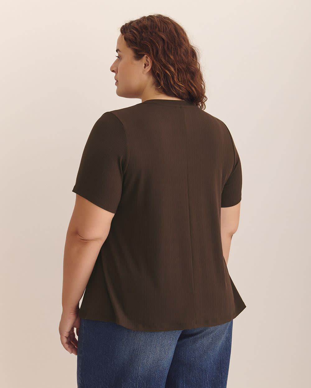 Keep it easy and breezy with this plus-size ribbed swing top. Designed with short sleeves and a flowy fit, it's the perfect everyday piece for comfort and style.