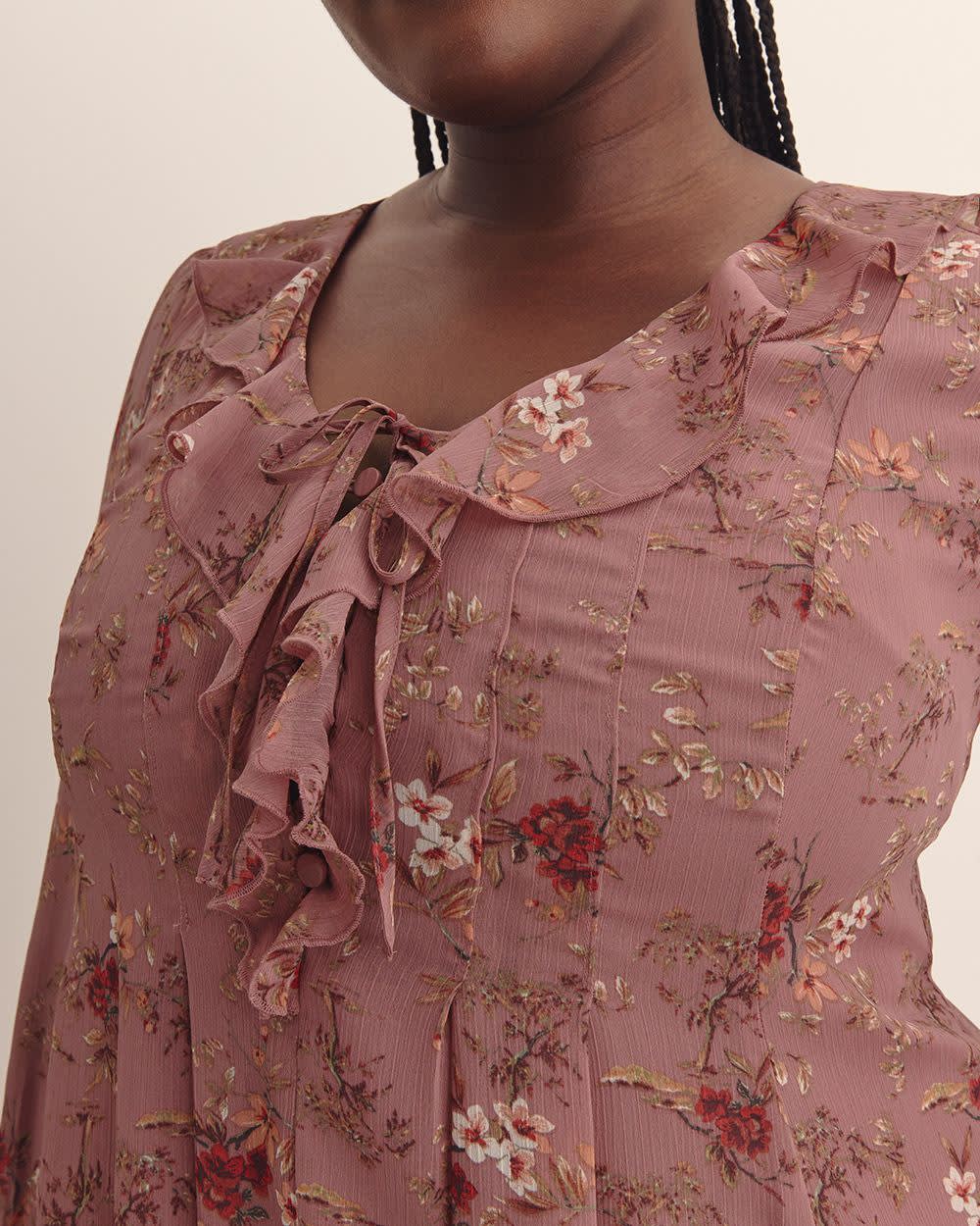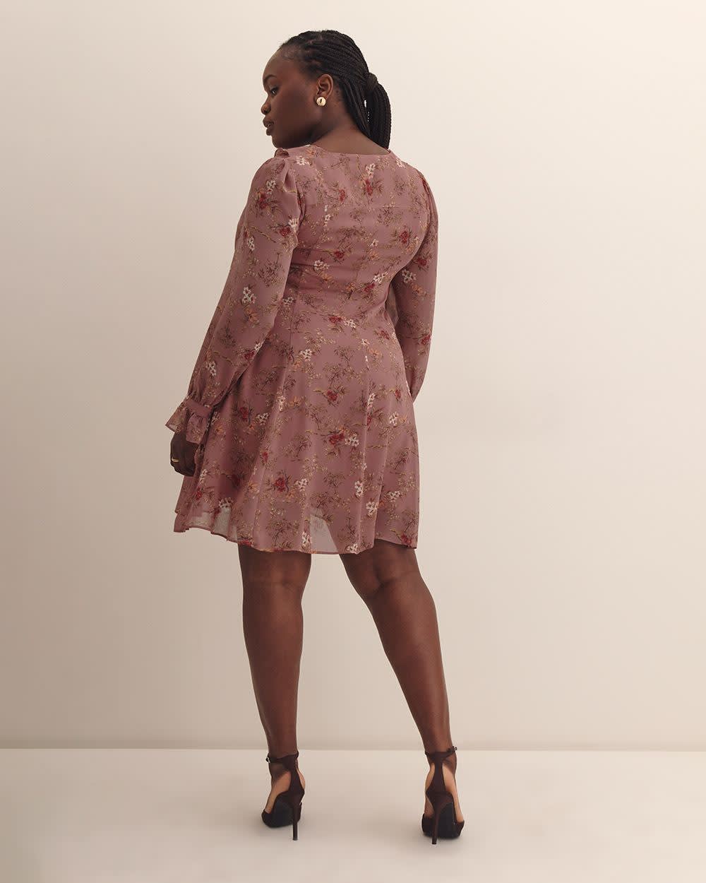 Flirty and flowy, this plus-size short-length floral swing dress is all about easy elegance. With ruffled details and a breezy fit, it's a charming choice for day or night.