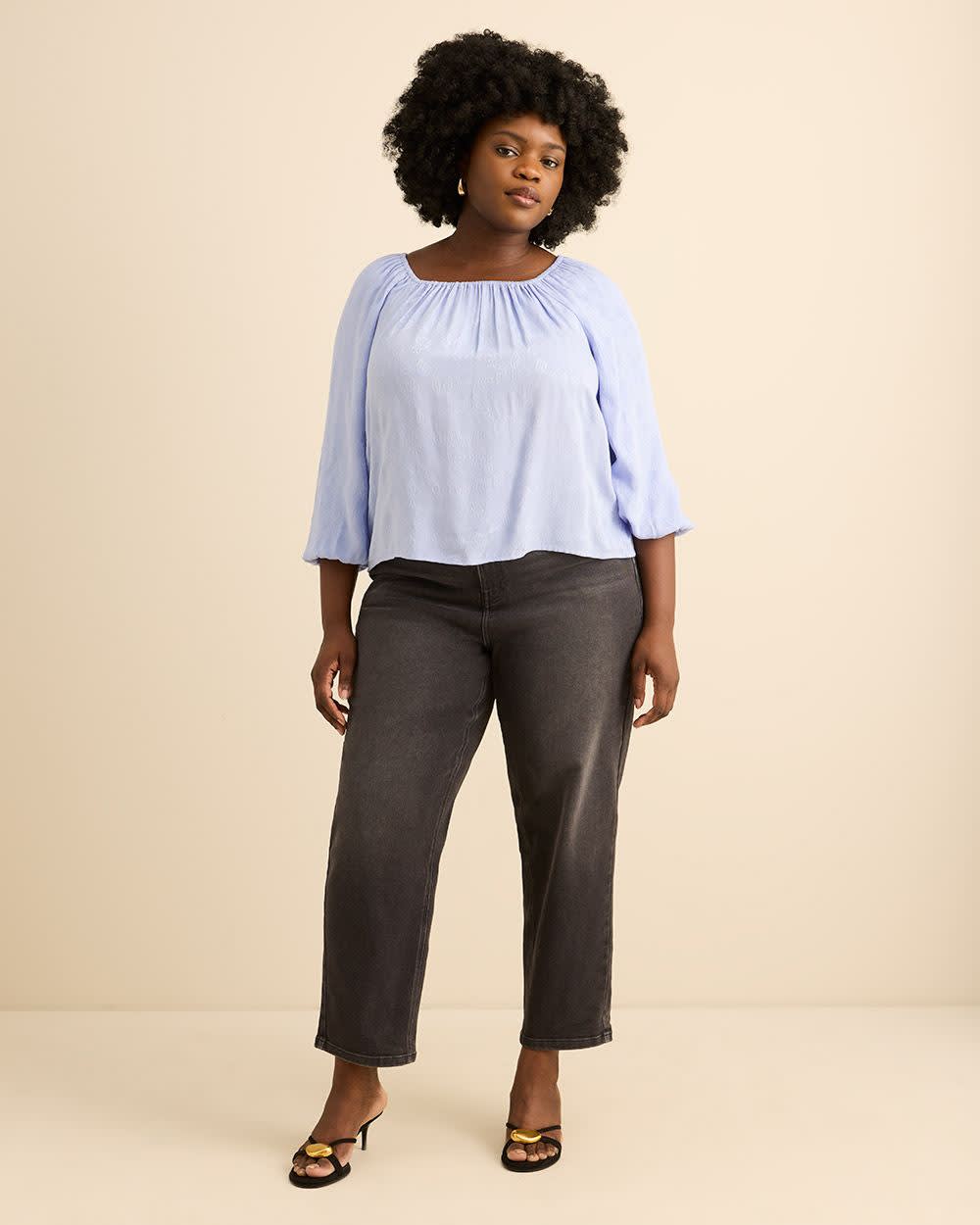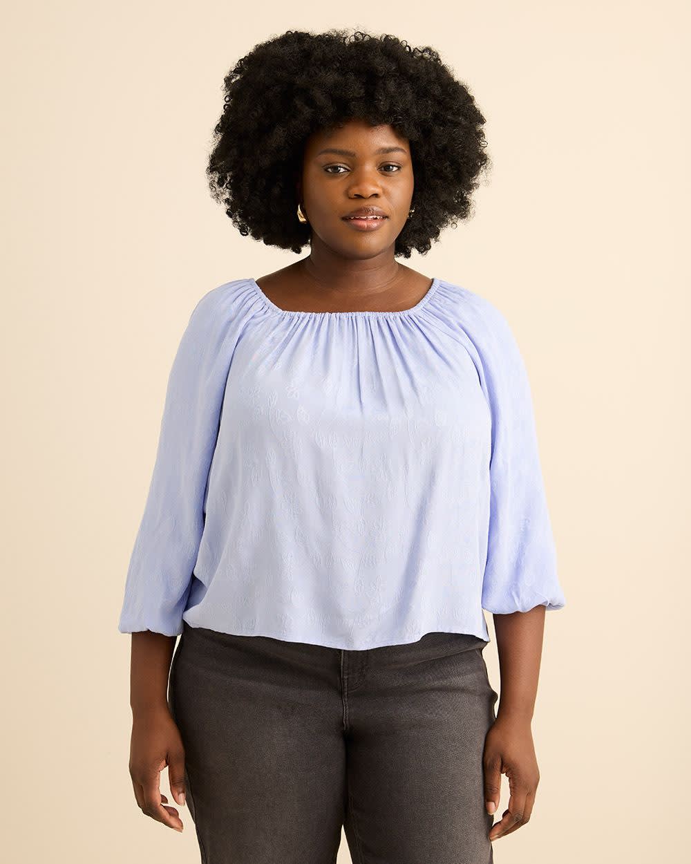 Square Neckline Puffed Sleeve Slight Swing Blouse - Addition Elle