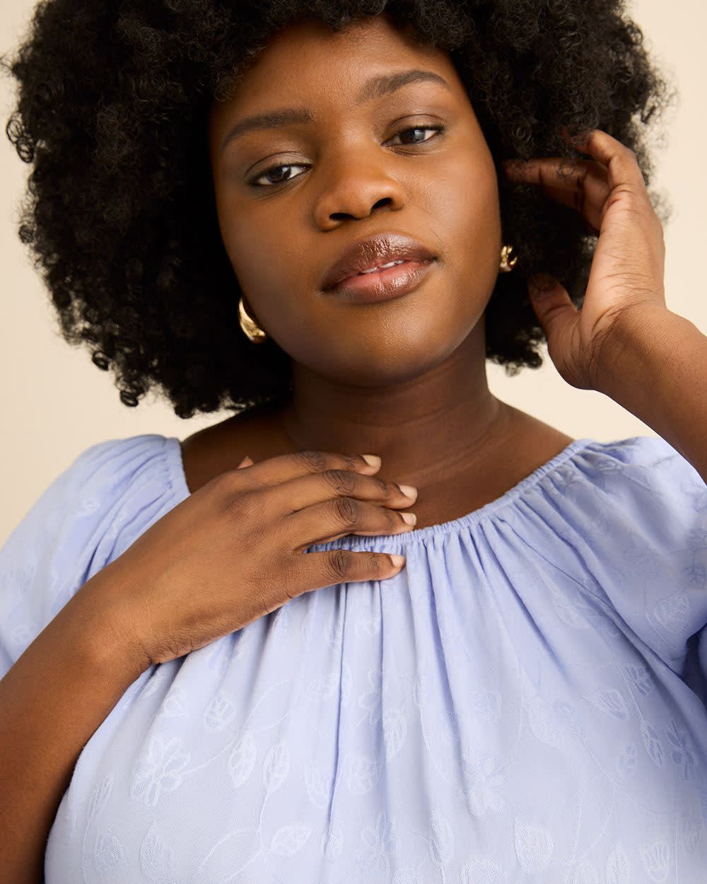 Bring a touch of modern romance to your everyday style with this plus-size blouse with puffed sleeves. Its flattering square neckline and gentle swing silhouette create an effortless, curve-loving fit that feels as beautiful as it looks.