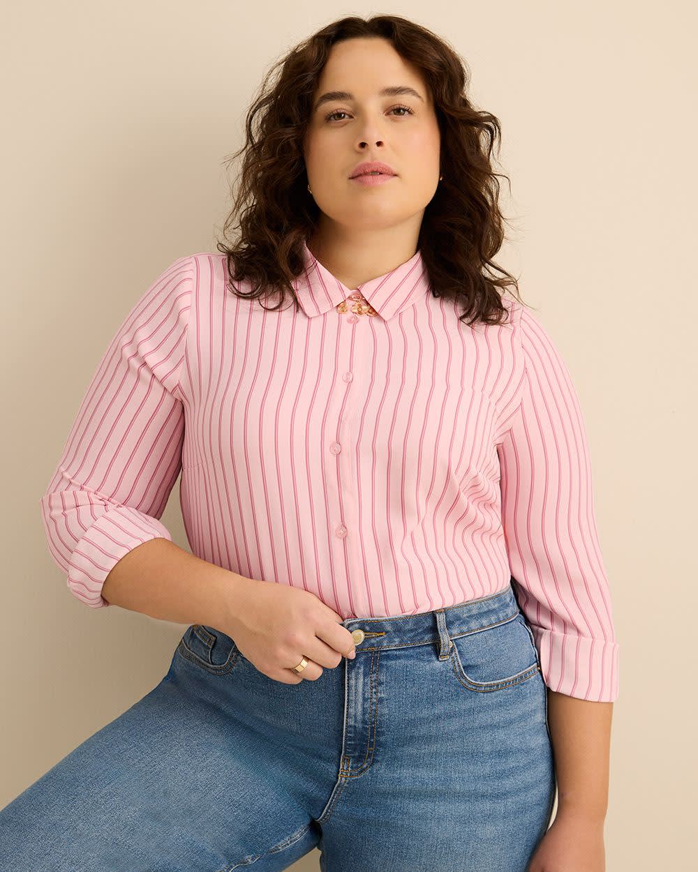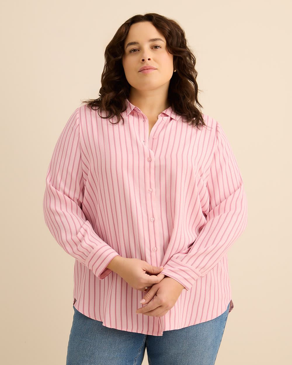 Who knew you needed a buttoned-down shirt that much? This plus-size tunic shirt is just perfect for you with all its classic details and trendy cut. Easy to pair with fashion leggings as a layering piece or tucked in your favourite jeans for a versatile outfit.