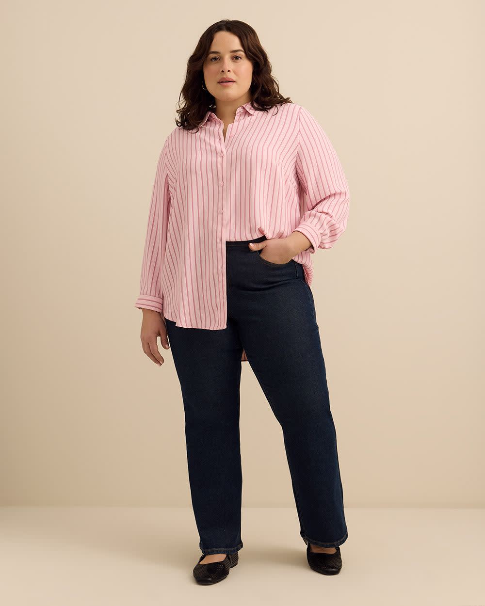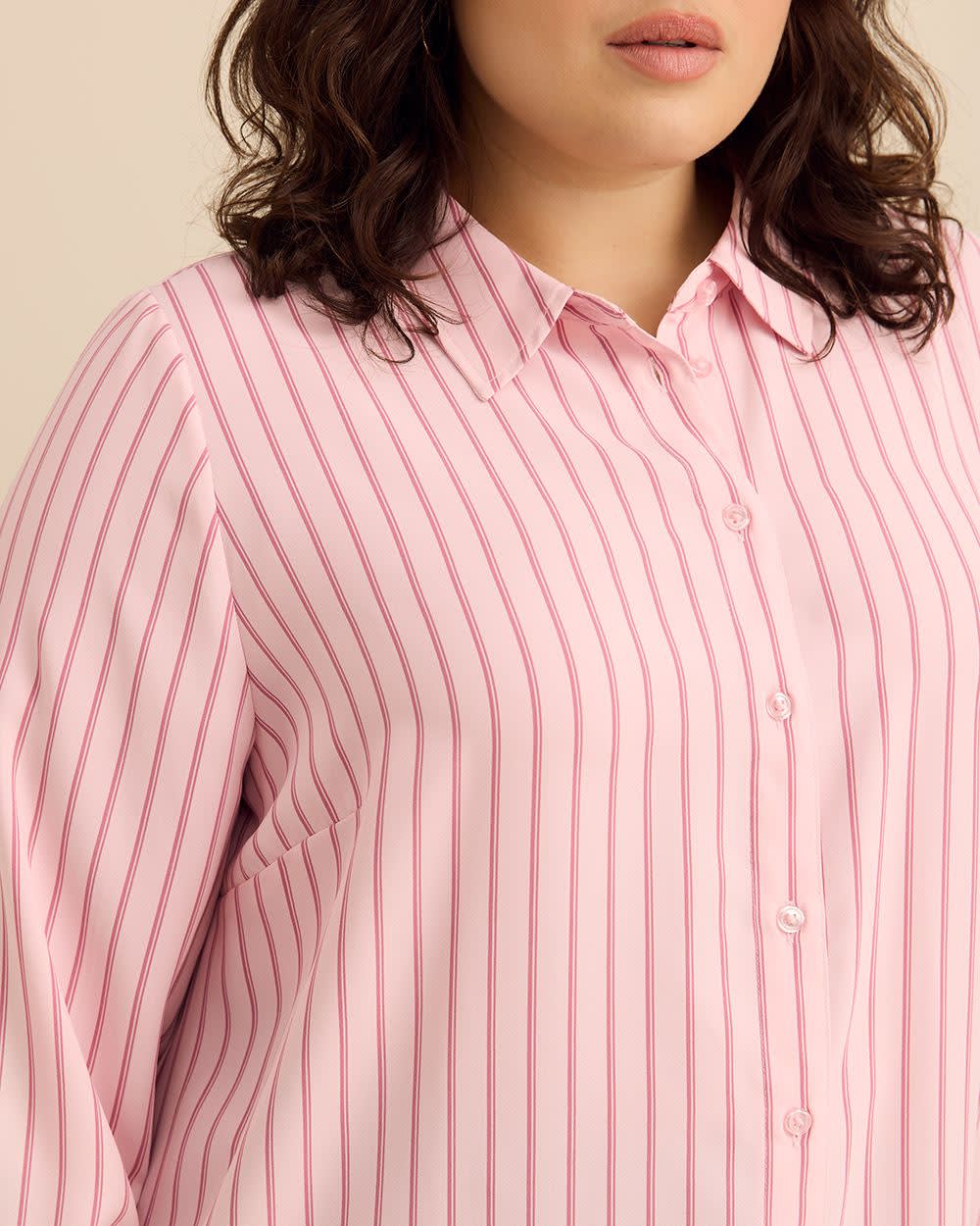 Who knew you needed a buttoned-down shirt that much? This plus-size tunic shirt is just perfect for you with all its classic details and trendy cut. Easy to pair with fashion leggings as a layering piece or tucked in your favourite jeans for a versatile outfit.