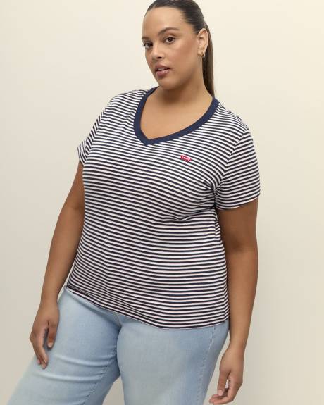 Modern, casual and comfortable, this plus-size classic tee from Levi's is a versatile pick for your everyday wear. Featuring a casual fit, V-shaped neckline and trendy striped pattern, this short-sleeve t-shirt is perfect all year round.