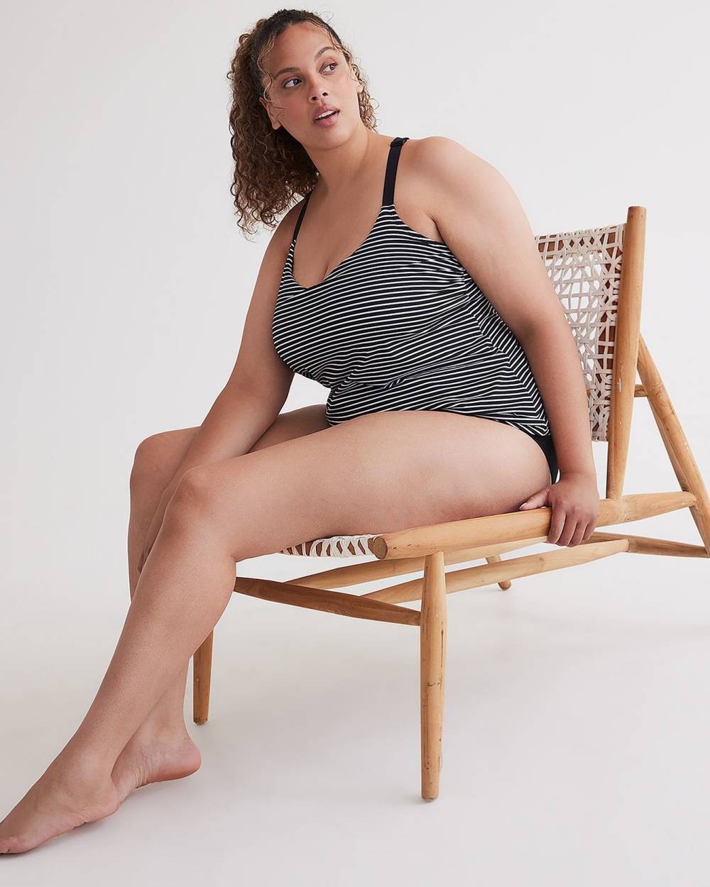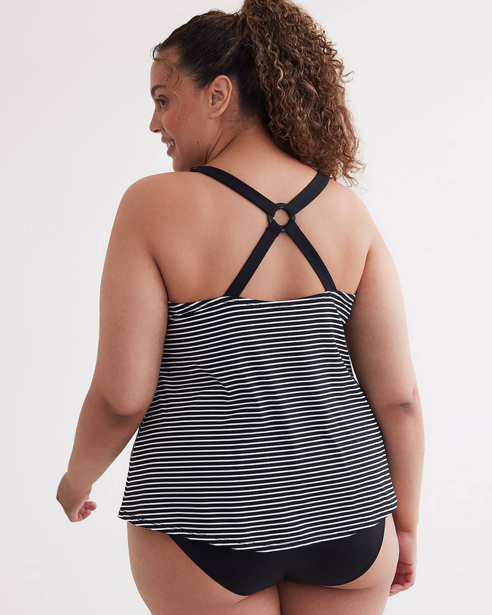 Splish splash, this plus-size tankini top will get you ready to enjoy your summer vacation. Featuring a trendy striped print with a flattering design, this is the perfect swim top to pair with your basic swim brief.