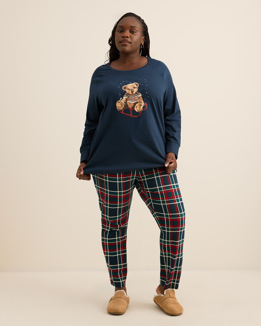 Get cozy every single night with this plus-size cotton blend pyjama set. Made of a tunic-length relaxed-fit top with a cute teddy bear placement print and a comfortable plaid legging, this pj is perfect for your unwinding time and for a good night of sleep.