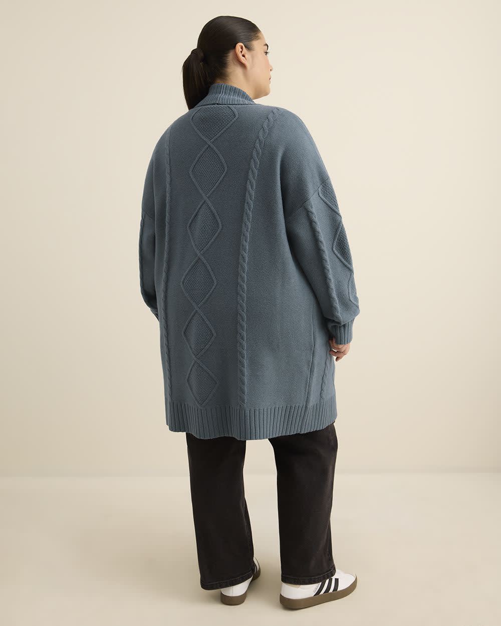 Tunic Sweater Cardigan with Cable Stitch Details