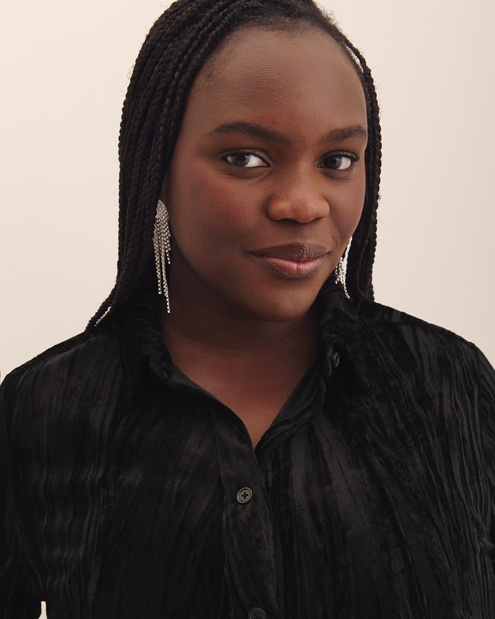 Luxurious yet laid-back, this plus-size velvet buttoned-down shirt is a wardrobe standout. With a straight fit and subtle high-low hem, it's perfect for dressing up or down.