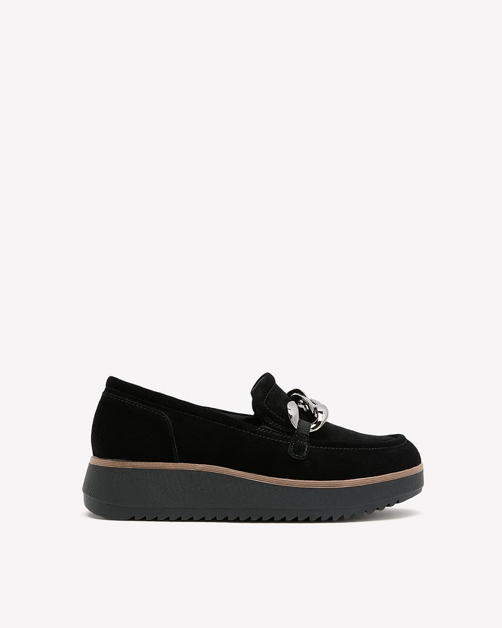 ONLINE EXCLUSIVE. If you are looking for a classic slip-on shoe with an added touch of style, look no further than this beautiful leather loafer with a platform sole and oversized buckle from Clarks. Versatile, comfortable and timeless, they are a must in your shoe collection.