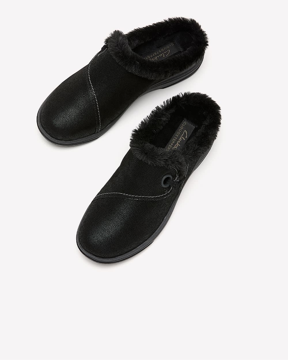 ONLINE EXCLUSIVE. Take on the season in this wide cozy clog from Clarks. which delivers plenty of grip when the ground gets frosty. Leveling up your comfort with a plush, pillowy footbed, this easy-wear pair is crafted with soft textiles and underpinned by the ultimate Breeze sole for lightweight support.
