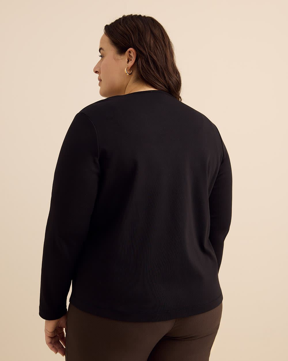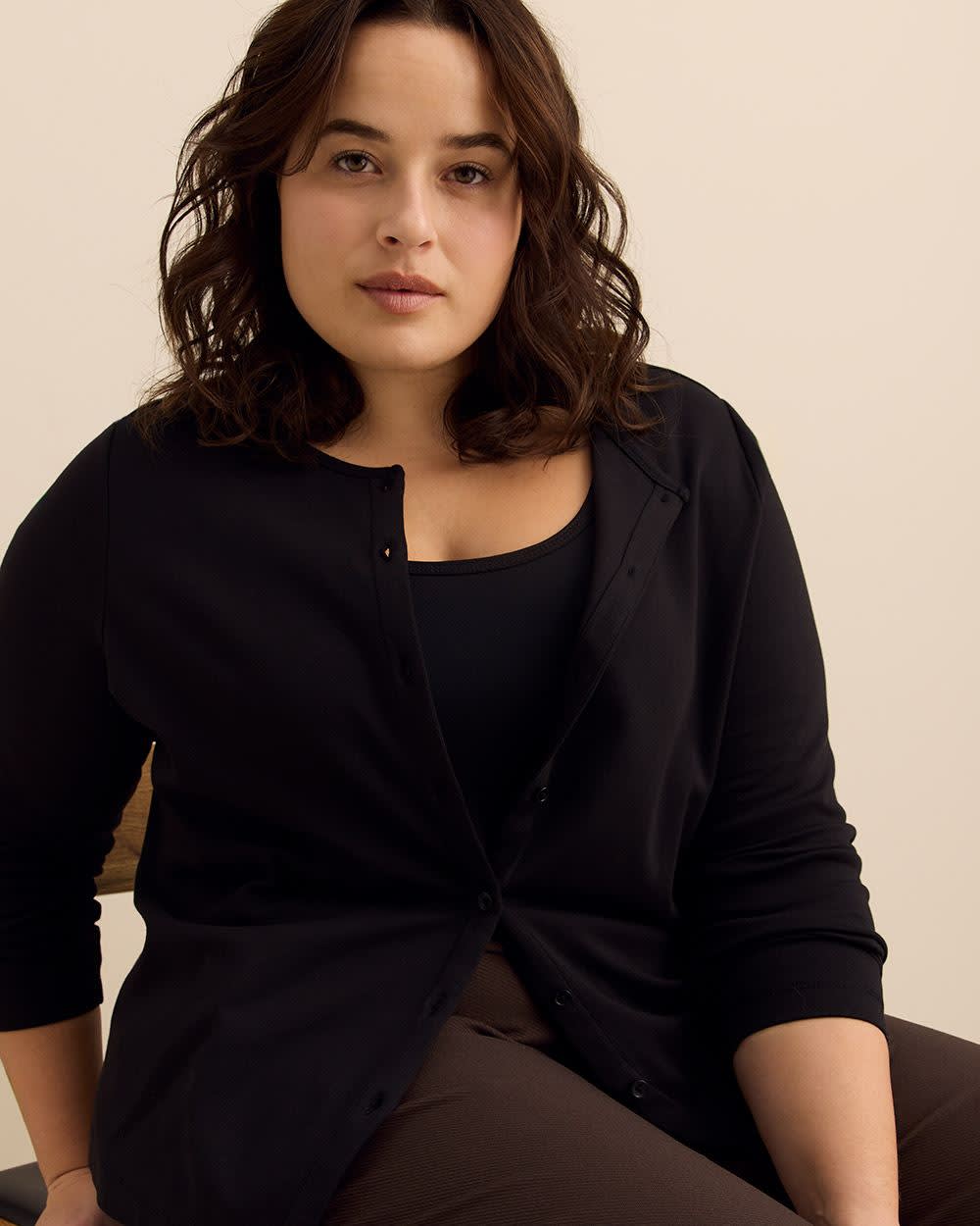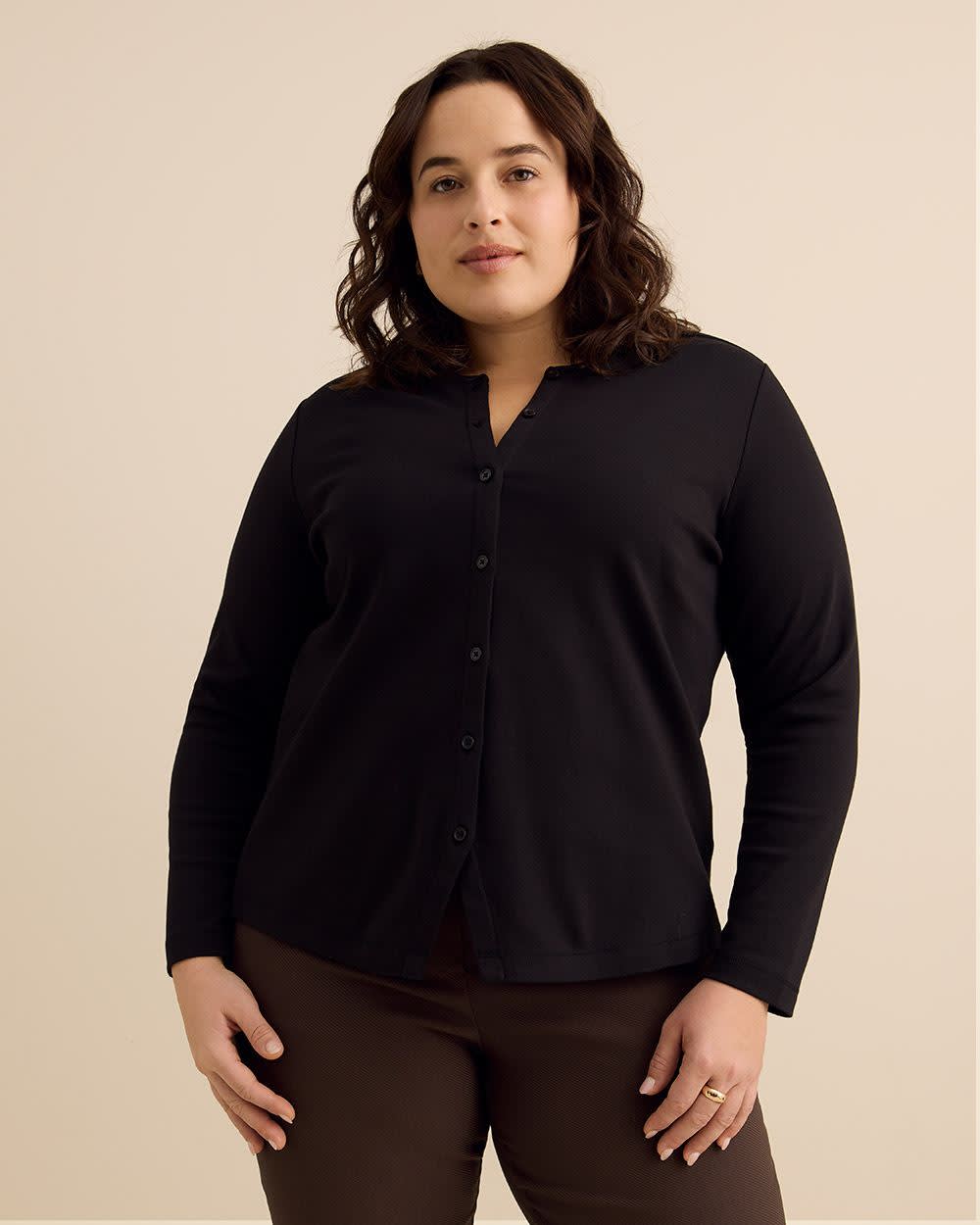 Une pièce classique avec une touche d'élégance décontractée. Ce cardigan taille plus en tricot doux tombe à merveille grâce à son ourlet à pans ouverts, ajoutant du mouvement et du style à votre look. Facile à boutonner, encore plus facile à adopter.