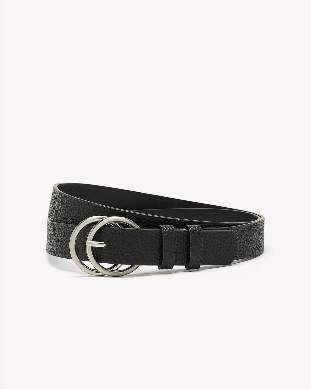 Ceinture mince en cuir synthétique avec boucle à double anneau