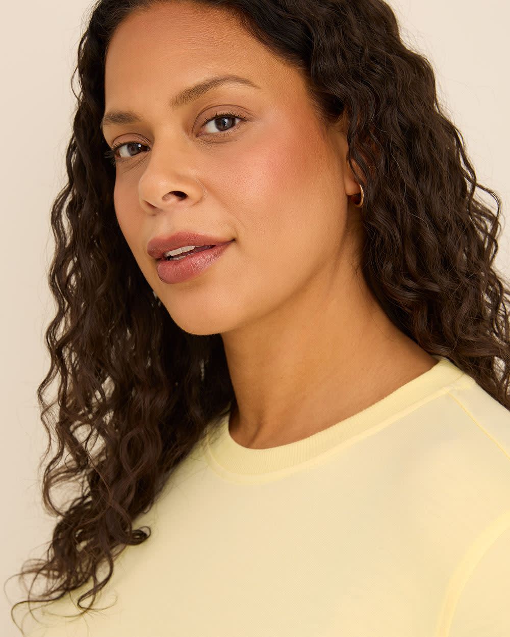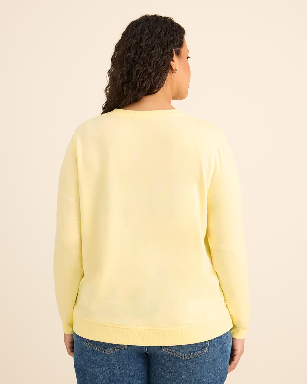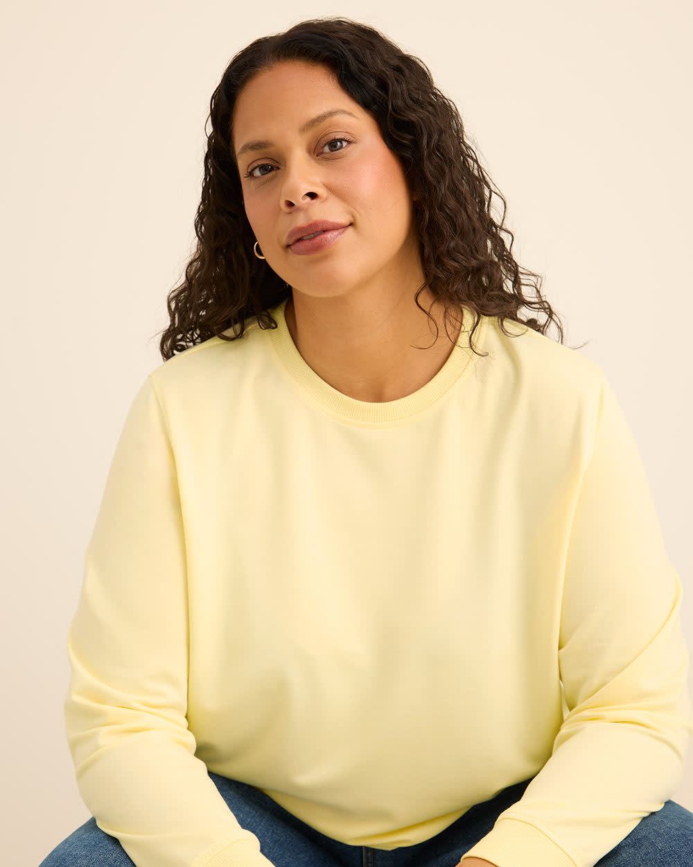 Êtes-vous prête à vous sentir dorlotée? Doté de détails classiques comme un col rond et des épaules légèrement tombantes, ce sweatshirt taille plus en molleton est parfait pour agencer à des leggings lors de vos journées décontractées pour vous sentir confortable sans compromettre votre style.