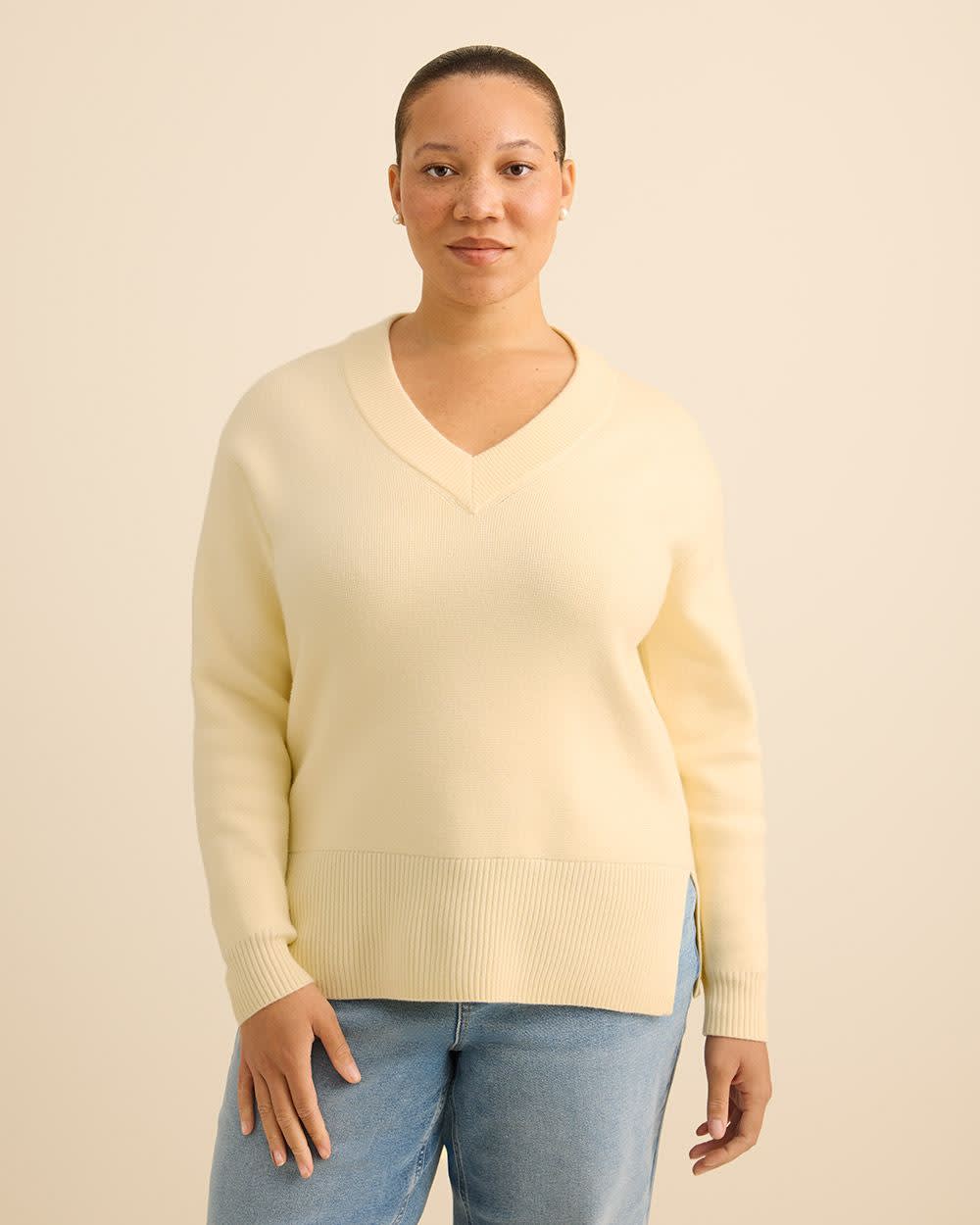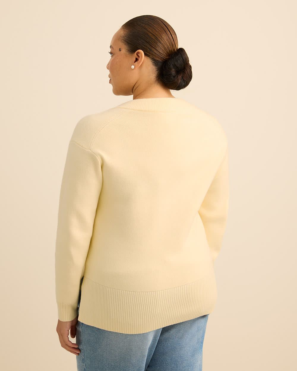Chandail en tricot à manches longues avec col en V - Addition Elle