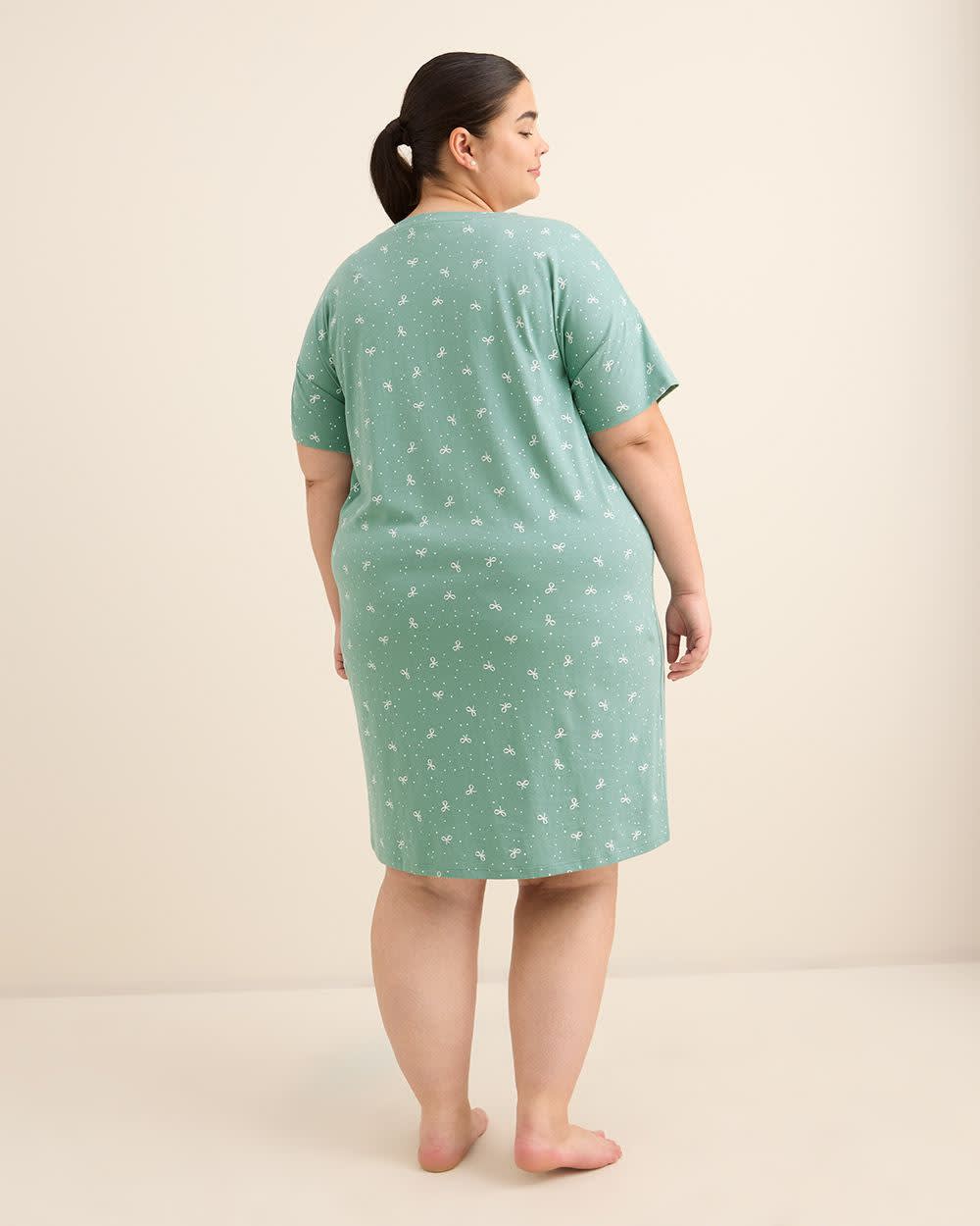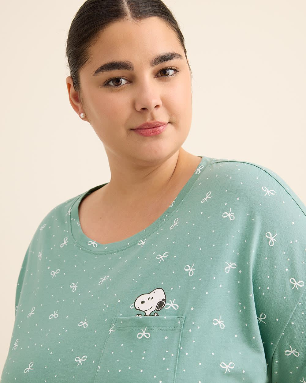 Aussi confortable la nuit que jolie le matin venu, cette chemise de nuit taille plus à manches courtes est faite d'un mélange de coton pour une sensation douce au toucher. Sans oublier son adorable imprimé de Snoopy qui ressort de la poche à la poitrine pour un pyjama encore plus parfait.
