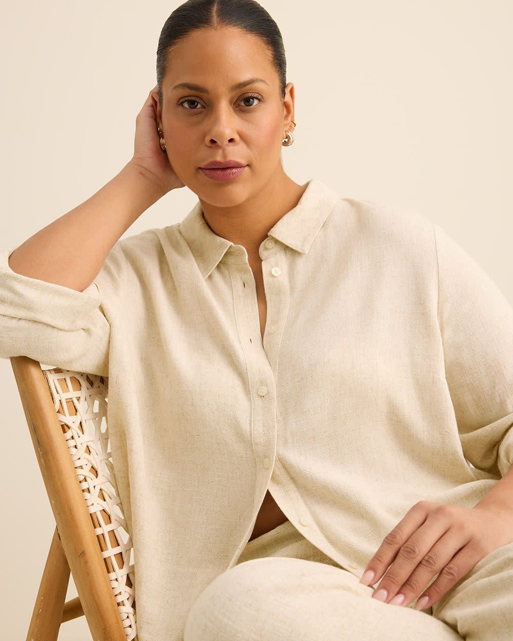 Décontracté et confortable. Stylé et élégant. Fait d'un mélange de lin léger et respirant, ce chemisier taille plus vous offre le meilleur des deux mondes avec son fini tellement confortable et son look plus que tendance. Parfaite avec un legging spécial en semaine ou pendant le week-end!