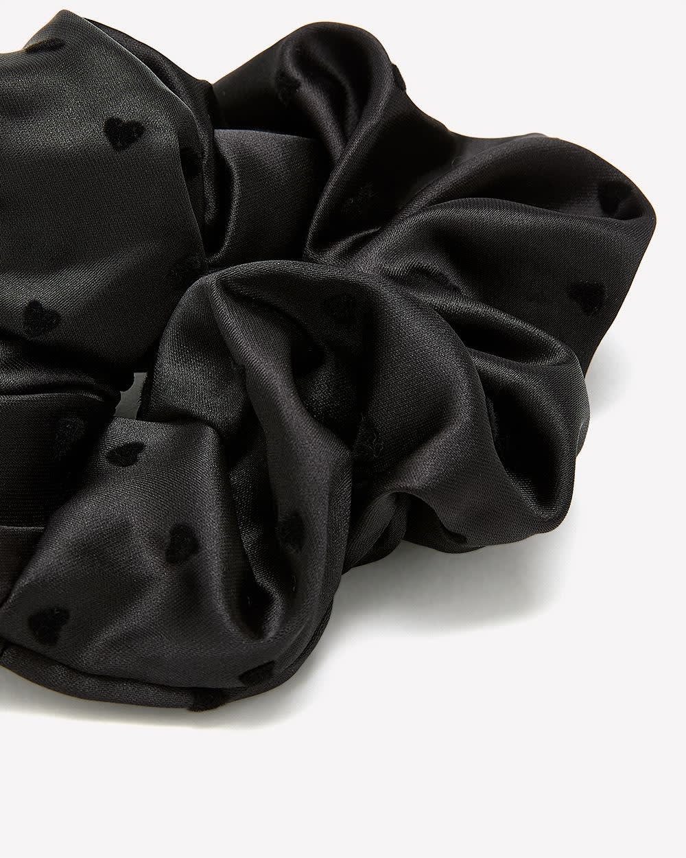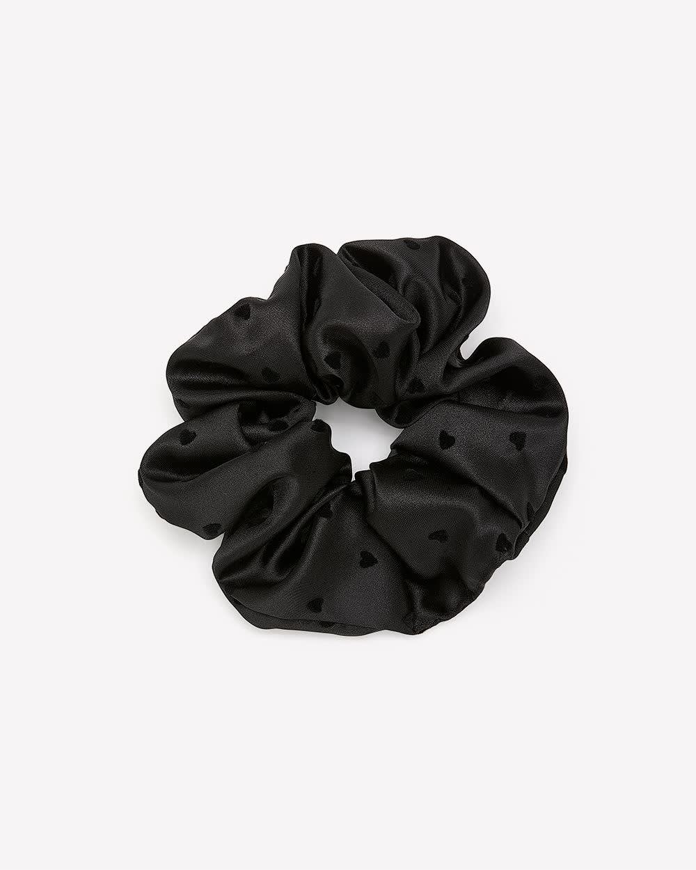 Aussi simple que polyvalent et élégant, ce gros chouchou à cheveux noir orné de petits coeurs ton sur ton ajoute une touche de charme à vos queues de cheval, vos chignons ou n'importe quelle autre coiffure.