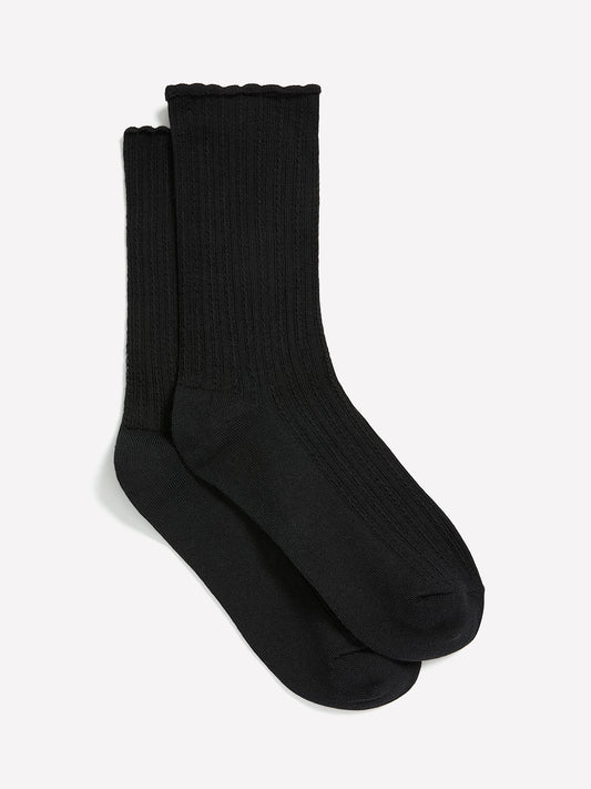 Chaussettes noires texturées à rebord festonné
