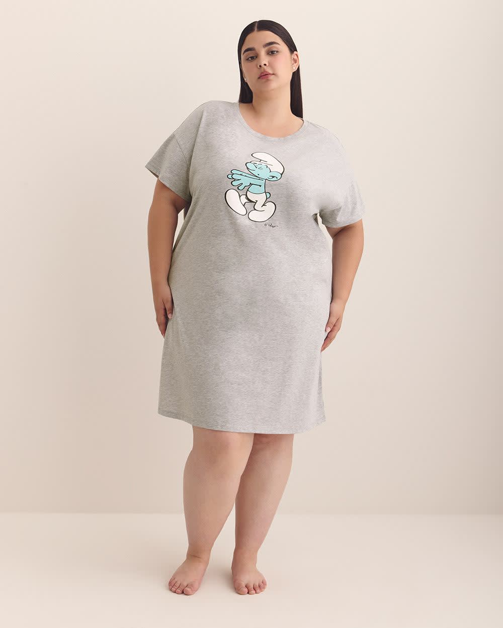 Chemise de nuit à manches courtes avec imprimé de Schtroumpfs - ti Voglio