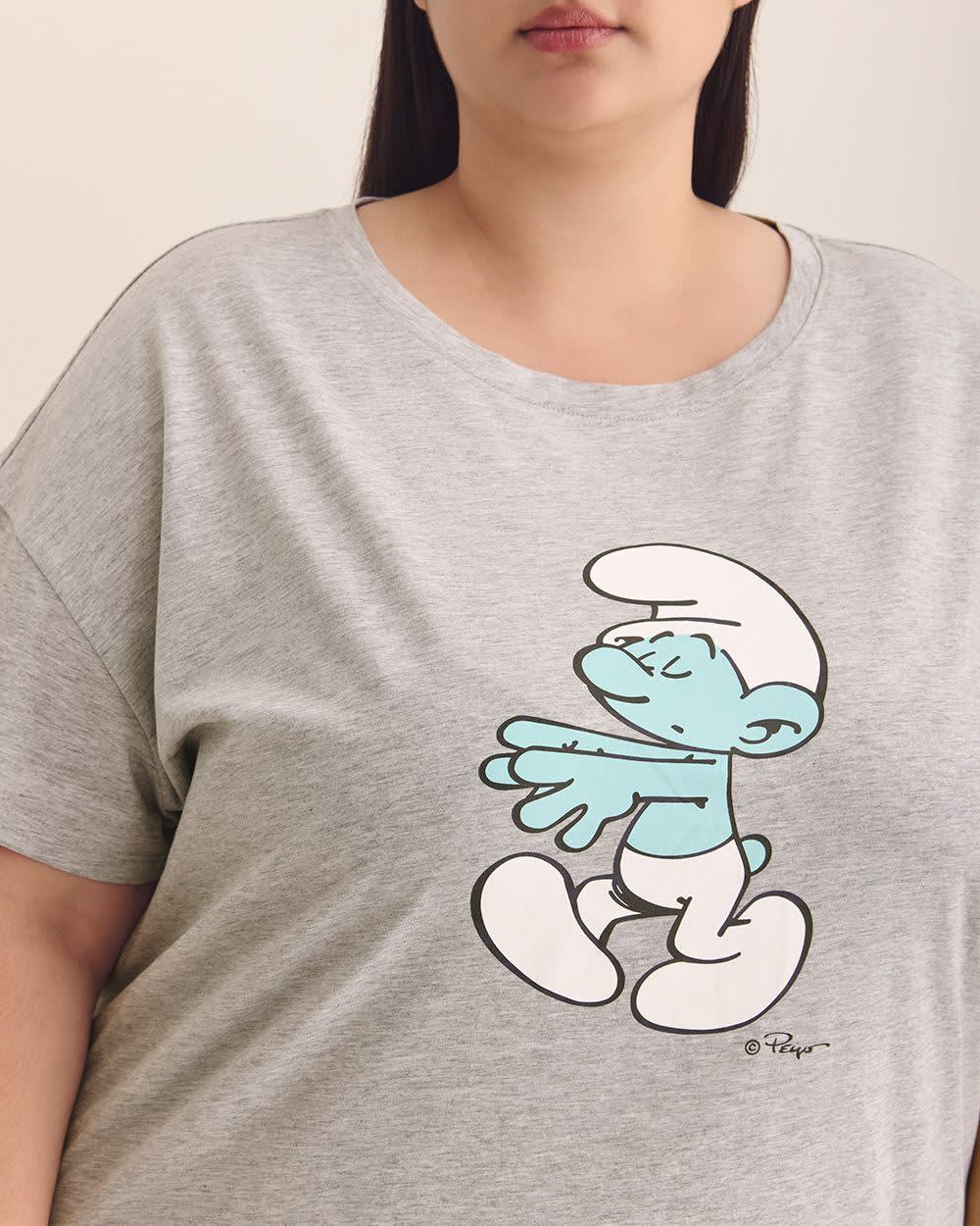 Cette chemise de nuit taille plus à manches courtes est faite d'un mélange de coton pour une sensation douce au toucher. Elle est ornée d'un magnifique imprimé de Schtroumpf à l'avant faisant en sorte qu'elle est très confortable pour la nuit, mais aussi adorable pour le petit déjeuner. Caractéristiques - Mélange de coton - Chemise de nuit à manches courtes - Imprimé central de Schtroumpf - Col rond - Longueur : 39,5 po À propos de ti Voglio Conà§ue pour vos moments 100 % détente, mettez-vous en mode confort total avec la collection de tenues de nuit ti Voglio.