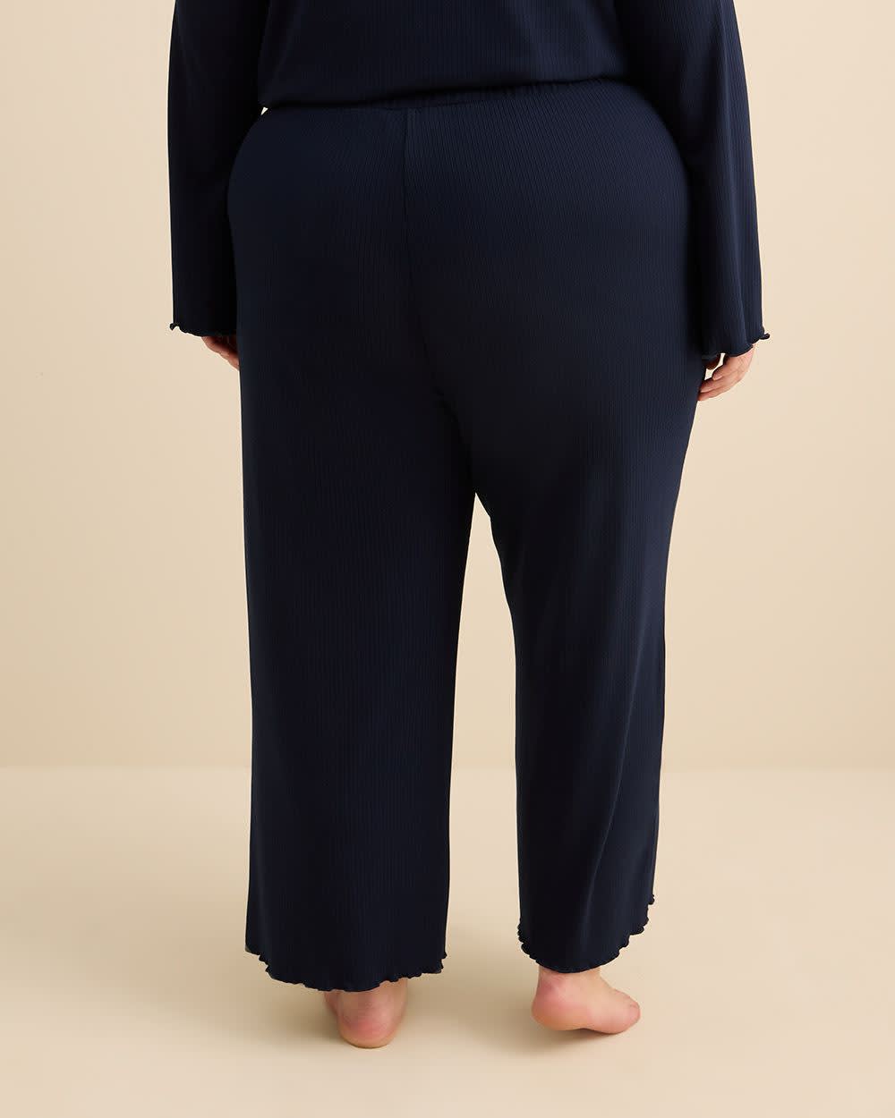 Le bas de pyjama parfait pour le printemps! Fait de tricot côtelé extensible, ce pantalon de pyjama taille plus longueur cheville est ultra confortable même lors des nuits chaudes. Un essentiel à ajouter à votre collection nocturne.