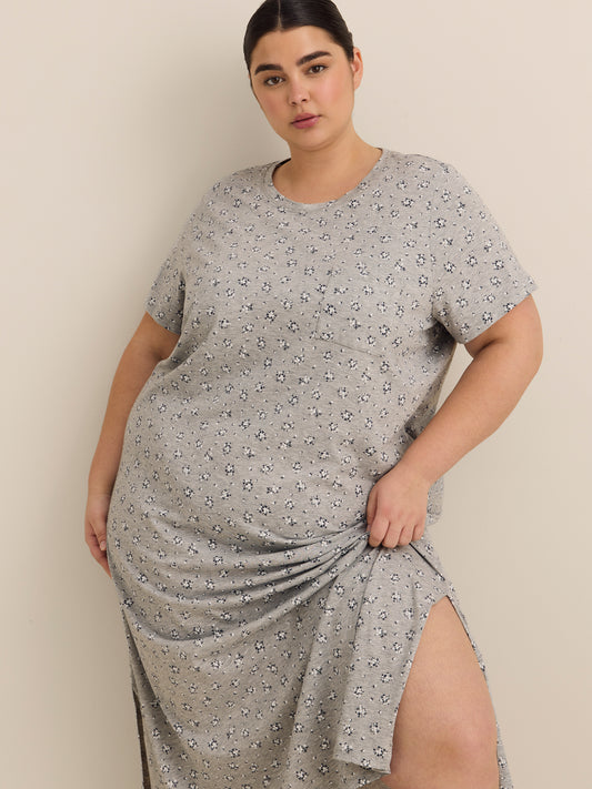 Faites de beaux rêves à saveur estivale! Cette longue chemise de nuit taille plus faite de tricot de coton extensible à joli motif de crème glacée est conçue avec un col arrondi, des manches courtes et des fentes de chaque côté de l'ourlet pour vous permettre de dormir confortablement et avec style toute la nuit.