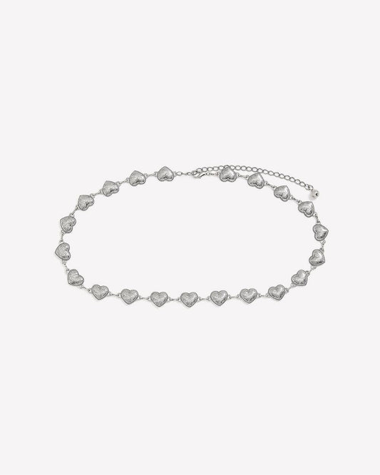 Ceinture argentée à maillons en forme de coeur