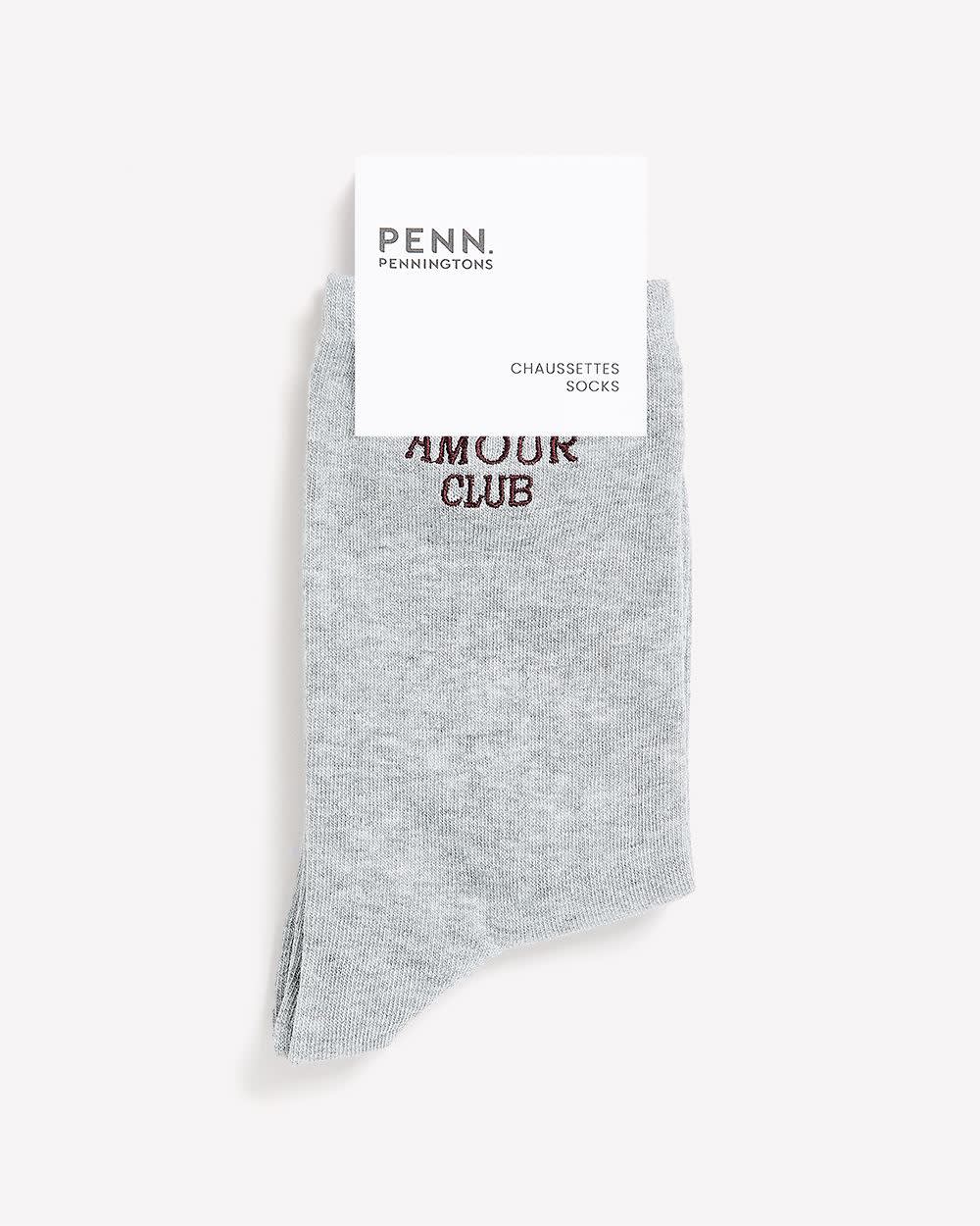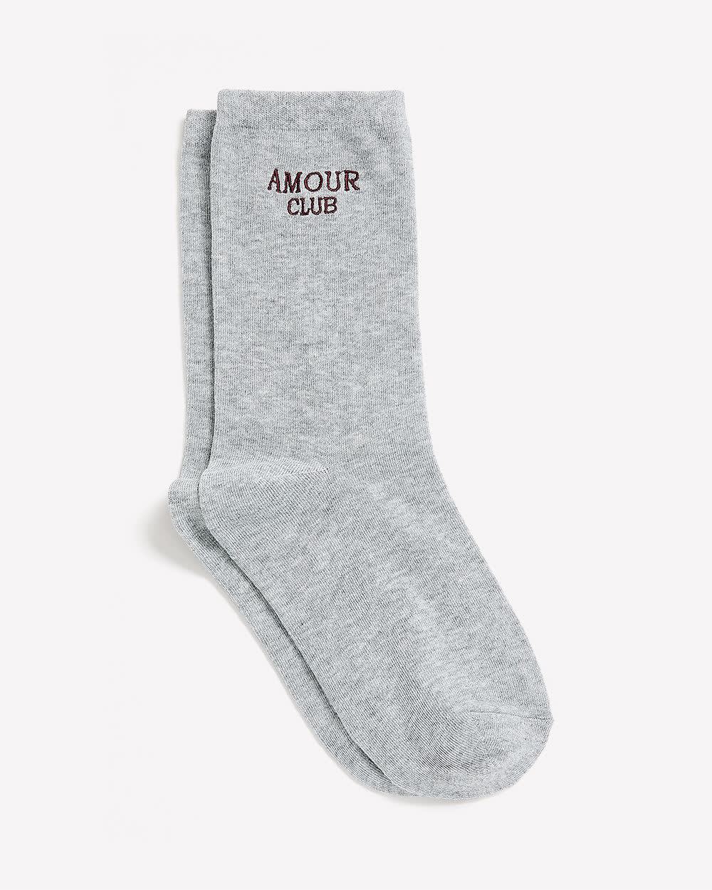 Chaussettes grises à imprimé Amour Club sur la cheville