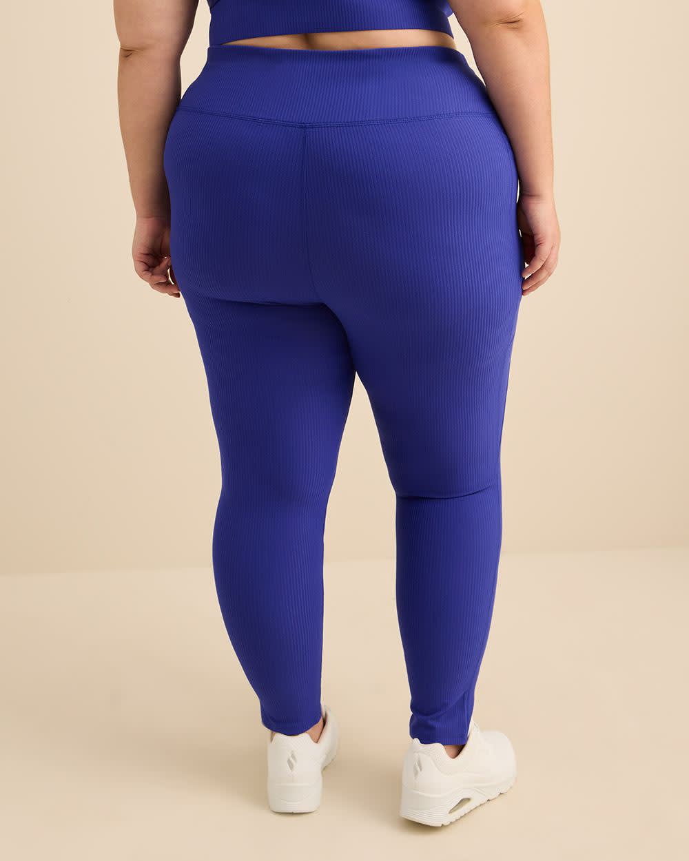 EXCLUSIVITÉ EN LIGNE. Bougez avec aisance et style avec ce legging taille plus fait d'un fini côtelé extensible pour une dose supplémentaire de confort. La large taille croisée vous assure un ajustement parfait tout en faisant ressortir votre petit côté moderne pour repousser vos limites lors d'un entraînement.